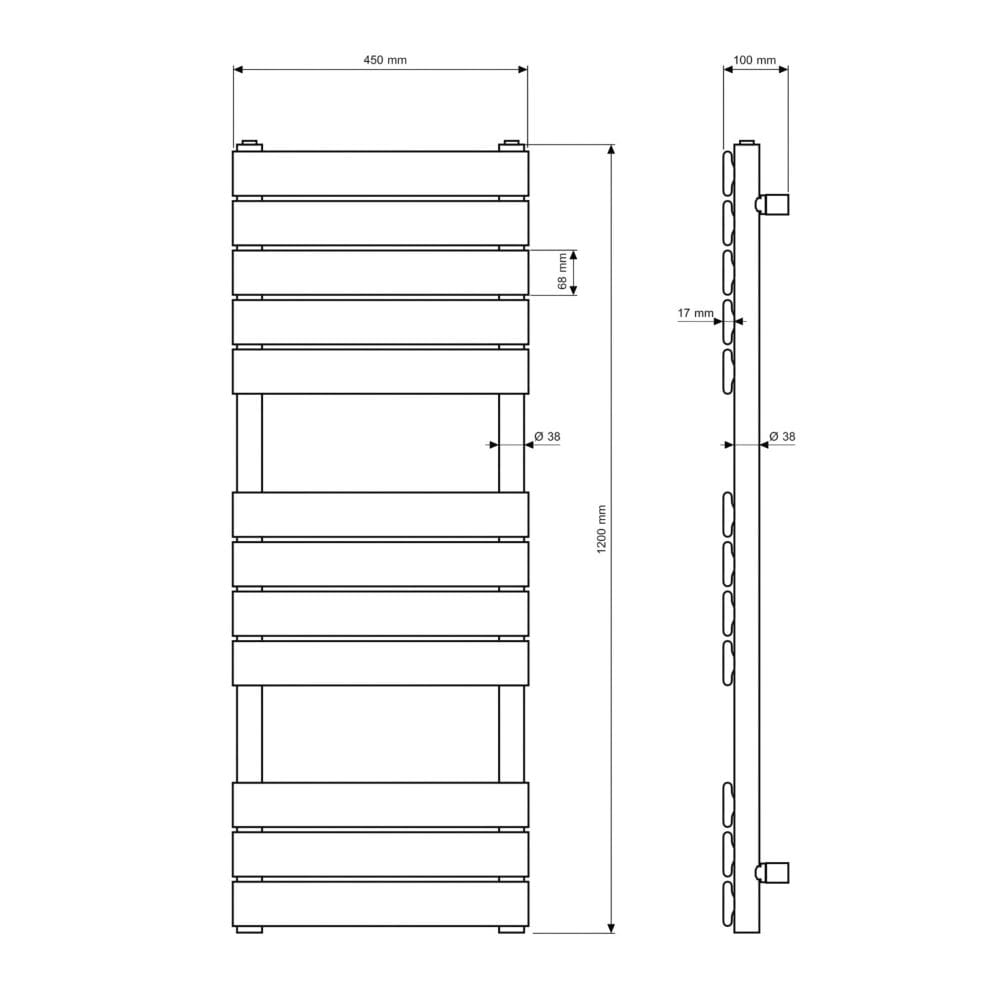 ● Łatwy montaż – grzejnik wyposażony jest w boczne uchwyty oraz standardowe podłączenia o średnicy 38 mm, co ułatwia instalację i podłączenie do instalacji grzewczej.