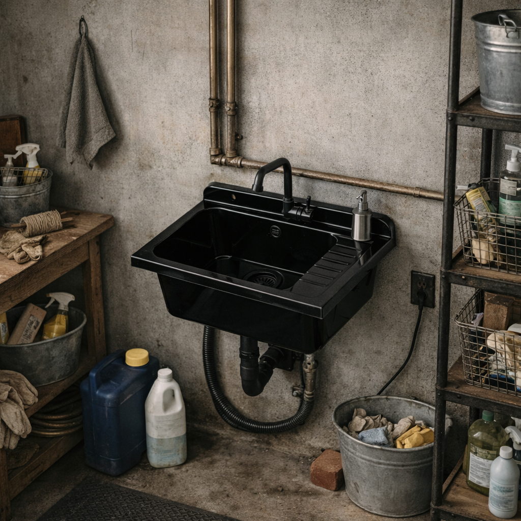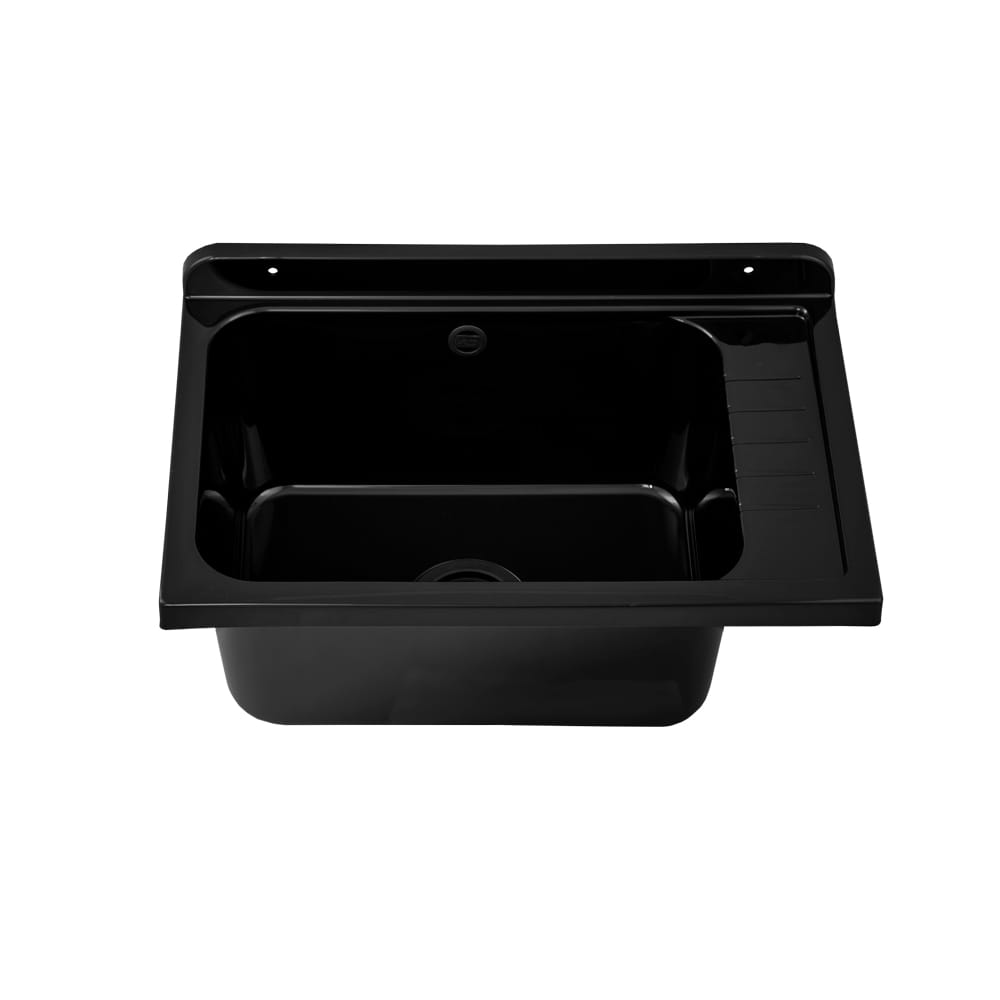 Dzięki czarnej kolorystyce produkt prezentuje się estetycznie i harmonijnie, dlatego świetnie sprawdzi się nie tylko w garażu czy warsztacie, lecz także w pralni i domowym pomieszczeniu gospodarczym. Komora została wykonana z wysokiej jakości polipropylenu, który zapewnia odporność na detergenty, wilgoć oraz działanie podwyższonych temperatur. Pojemna komora gwarantuje wygodę podczas codziennych prac porządkowych i technicznych, takich jak pranie ręczne, mycie narzędzi czy czyszczenie akcesoriów. Materiał cechuje się wysoką odpornością na uderzenia i środki chemiczne, co pozwala na długotrwałe użytkowanie nawet w wymagających warunkach. Zlew umożliwia montaż z baterią ścienną lub stojącą, co daje możliwość dopasowania do każdej instalacji wodnej. Produkt posiada syfon w zestawie, a jego elementy utrzymane są w spójnej kolorystyce, co podkreśla estetyczny charakter całości. Gładka powierzchnia sprawia, że komora jest łatwa w pielęgnacji i odporna na zabrudzenia, dzięki czemu zachowuje atrakcyjny wygląd przez długi czas.