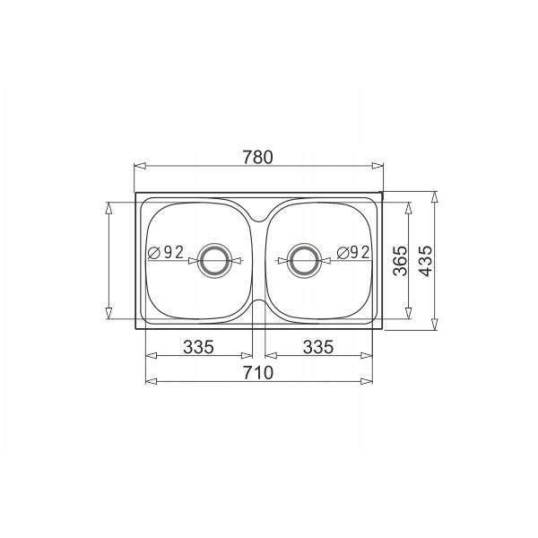 Zlewozmywak stalowy dwukomorowy Pyramis E 78 (78×43,5) 2B – 92 mm gładki