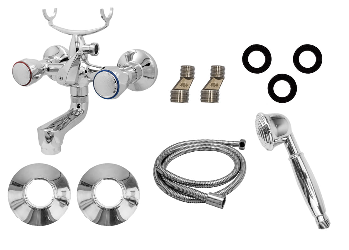 BATERIA WANNOWA KLASYCZNA Z ZESTAWEM NATRYSKOWYM WĄŻ SŁUCHAWKA CHROM ELENA