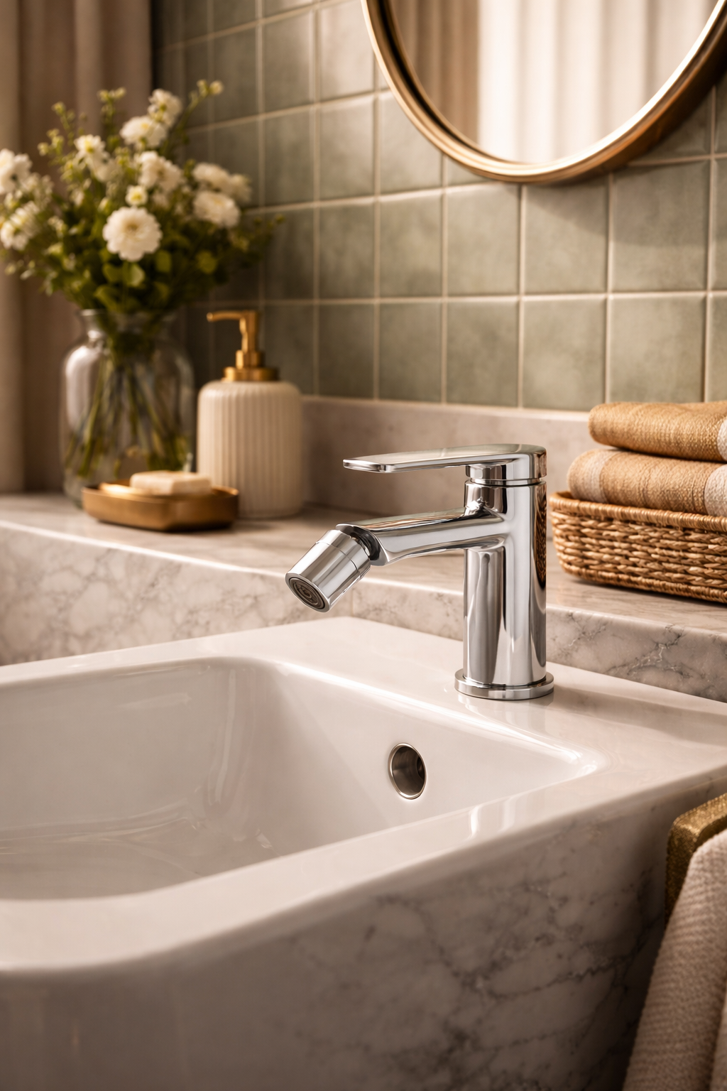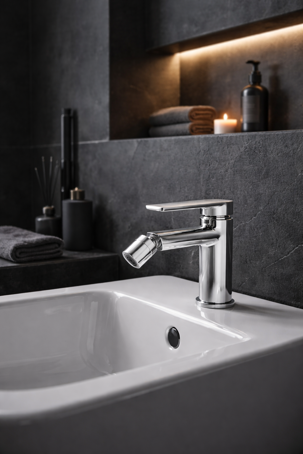 Montaż stojący w standardowym otworze umożliwia szybkie i bezproblemowe dopasowanie do większości bidetów, co czyni ten model praktycznym wyborem zarówno do nowych aranżacji, jak i modernizacji.