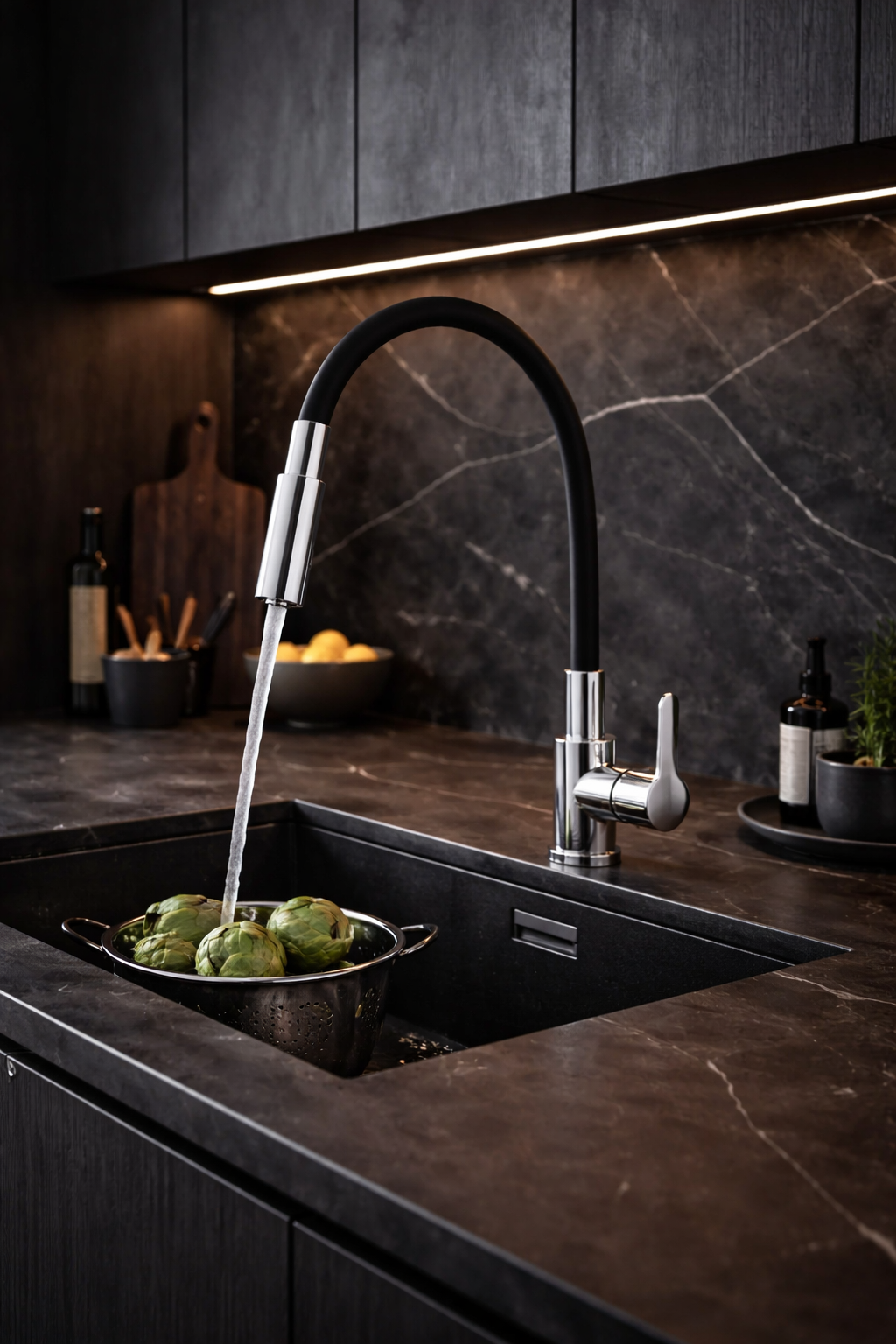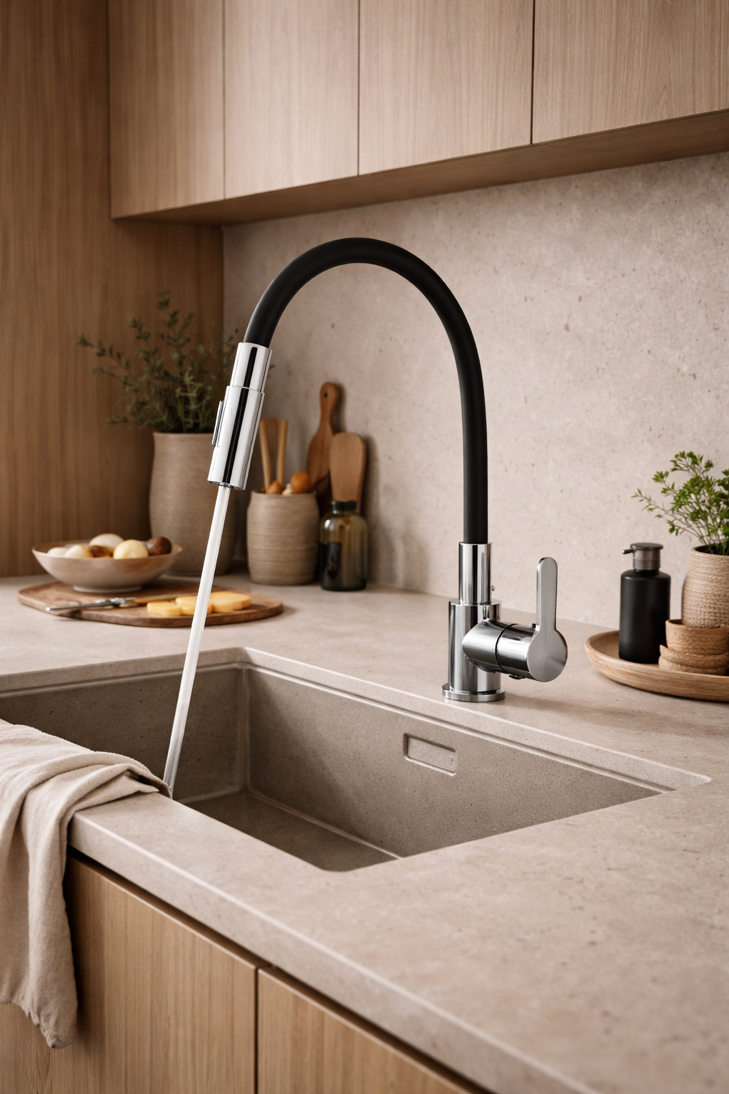 Model ten wyposażono w elastyczną wylewkę, która pozwala na swobodne kierowanie strumieniem wody i łatwy dostęp do każdego miejsca w zlewozmywaku, co znacząco ułatwia mycie naczyń, płukanie produktów czy utrzymanie czystości. Dwa tryby strumienia wody – laminarny oraz prysznicowy – umożliwiają szybkie dopasowanie pracy baterii do aktualnych zadań, zapewniając większą funkcjonalność i oszczędność czasu. Chromowane wykończenie nadaje baterii elegancki, ponadczasowy wygląd, który doskonale pasuje zarówno do kuchni nowoczesnych, jak i klasycznych, a solidna konstrukcja gwarantuje trwałość i niezawodne użytkowanie przez długie lata.
