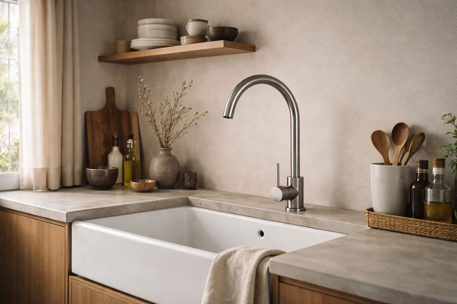 Wysoka, smukła konstrukcja zapewnia wygodę podczas mycia naczyń i napełniania dużych garnków, a obrotowa wylewka umożliwia swobodne manewrowanie strumieniem wody przy zlewie. Chromowane wykończenie nadaje baterii estetyczny, uniwersalny wygląd oraz zwiększa odporność na zarysowania, zabrudzenia i wysoką temperaturę. Solidna konstrukcja oraz płynna regulacja temperatury i strumienia wody gwarantują komfort codziennego użytkowania i niezawodność przez długie lata.