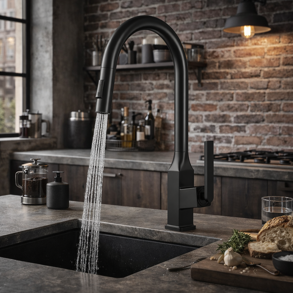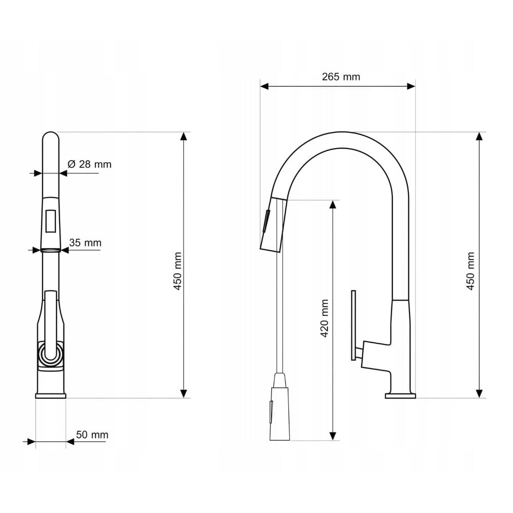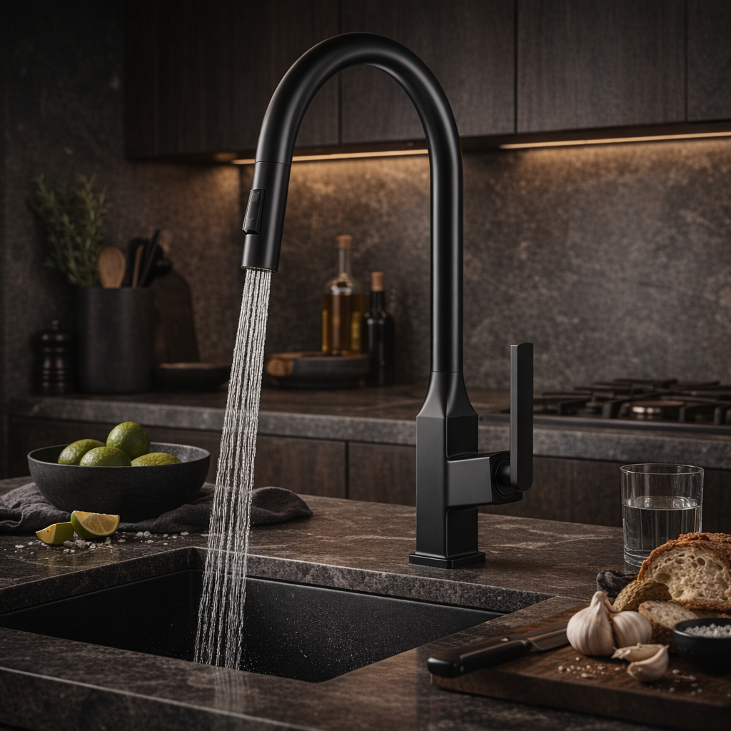 Wyposażona w wyciąganą wylewkę oraz dwufunkcyjną słuchawkę, znacząco ułatwia codzienne czynności – od mycia naczyń po dokładne płukanie komory zlewu. Długa, ruchoma konstrukcja pozwala swobodnie skierować strumień wody w dowolne miejsce zlewozmywaka, zapewniając pełną kontrolę nad zakresem pracy. Słuchawka oferuje 2 tryby pracy – strumień standardowy oraz prysznicowy, co umożliwia dopasowanie sposobu wypływu wody do aktualnych potrzeb. Model został wykonany z solidnego korpusu z mosiądzu, który gwarantuje trwałość, odporność na korozję oraz intensywne użytkowanie. Eleganckie czarne, matowe wykończenie nadaje baterii nowoczesny charakter i doskonale wpisuje się w aranżacje loftowe, industrialne oraz minimalistyczne.