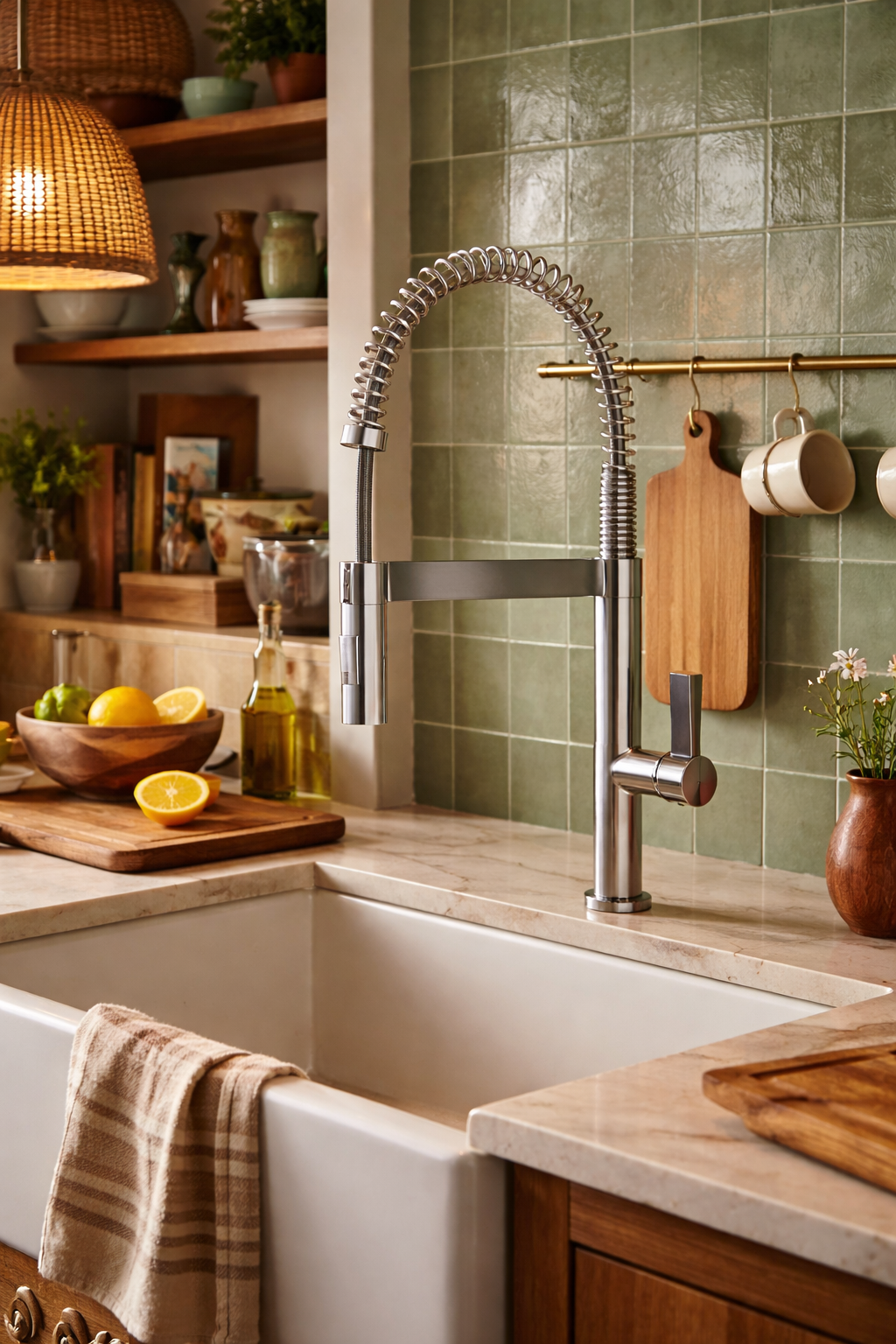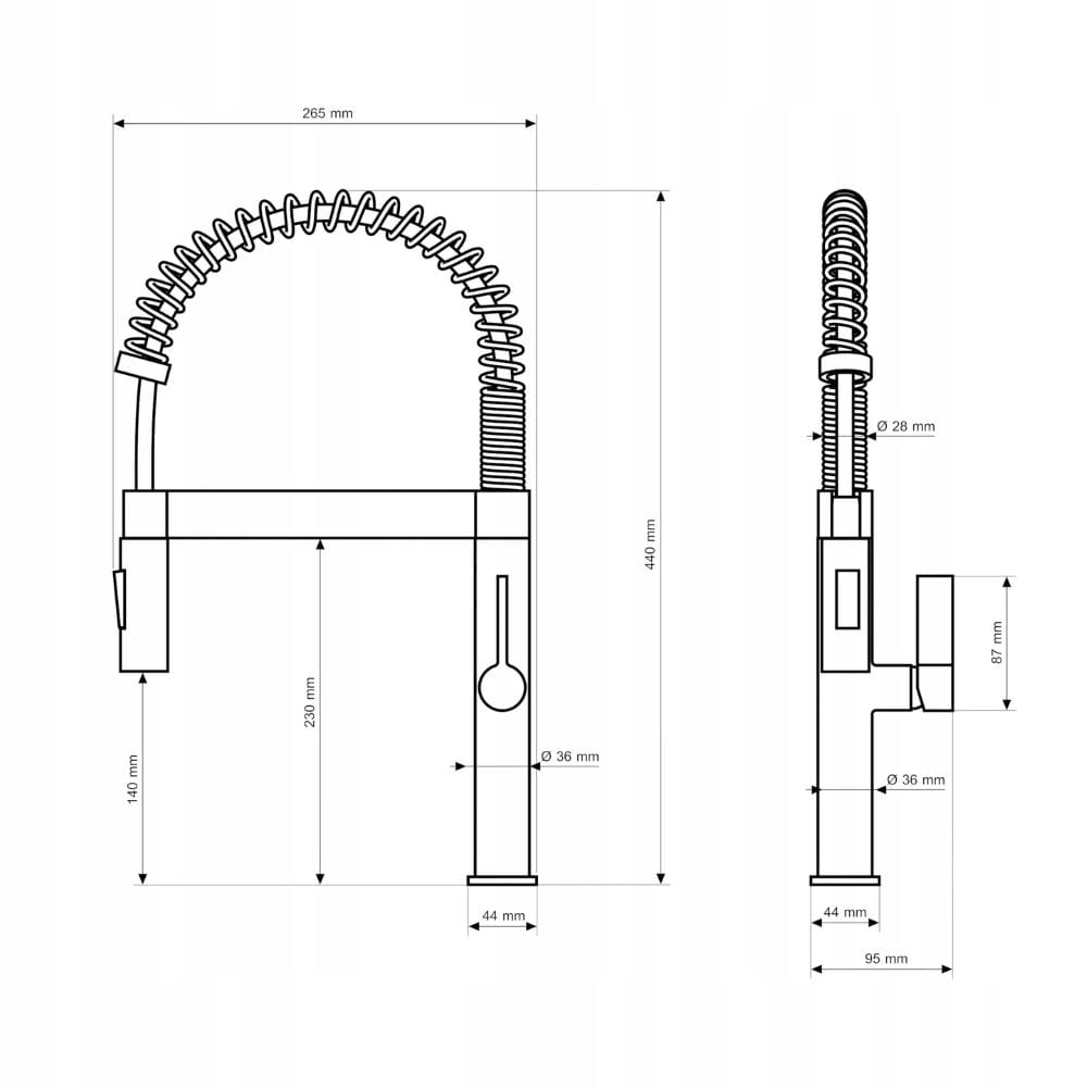 Wysoka konstrukcja oraz spiralna, elastyczna wylewka zapewniają pełną swobodę ruchu i łatwy dostęp do całej powierzchni zlewu, co znacząco ułatwia mycie naczyń, dużych garnków oraz płukanie produktów spożywczych. Wyciągana słuchawka z dwoma trybami strumienia pozwala szybko przełączać się pomiędzy strumieniem klasycznym a natryskowym, zwiększając funkcjonalność baterii w każdej sytuacji. Chromowane wykończenie nadaje całości nowoczesny, elegancki wygląd i sprawia, że bateria doskonale komponuje się z kuchniami w stylu loftowym, industrialnym i nowoczesnym. Solidna konstrukcja gwarantuje trwałość, odporność na intensywne użytkowanie oraz łatwe utrzymanie czystości, a wysoka forma zapewnia komfort nawet przy pracy z dużymi naczyniami.