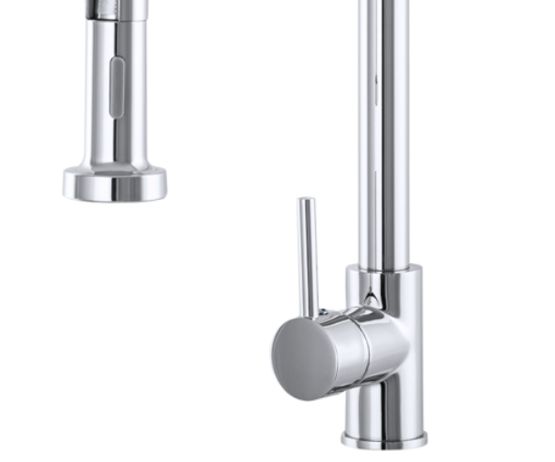 Spiralna, elastyczna wylewka zapewnia pełną swobodę ruchu i ułatwia mycie naczyń, płukanie warzyw oraz napełnianie dużych garnków, a wyciągana słuchawka z dwoma trybami strumienia pozwala szybko dopasować sposób pracy do aktualnych potrzeb. Chromowane wykończenie nadaje baterii elegancki, nowoczesny wygląd i sprawia, że doskonale komponuje się zarówno z kuchniami minimalistycznymi, loftowymi, jak i klasycznymi. Solidna konstrukcja gwarantuje trwałość i odporność na intensywne użytkowanie, a płynna regulacja temperatury i ciśnienia wody zapewnia wygodę każdego dnia.