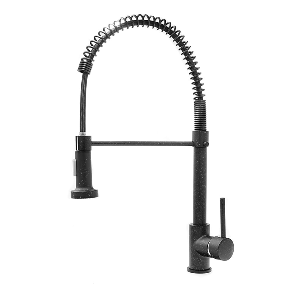 Spiralna, elastyczna wylewka zapewnia pełną swobodę ruchu i ułatwia mycie naczyń, płukanie warzyw oraz napełnianie dużych garnków, a wyciągana słuchawka z dwoma trybami strumienia pozwala szybko dopasować sposób pracy do aktualnych potrzeb. Granitowe wykończenie nadaje baterii elegancki, nowoczesny wygląd i sprawia, że doskonale komponuje się zarówno z kuchniami minimalistycznymi, loftowymi, jak i klasycznymi. Solidna konstrukcja gwarantuje trwałość i odporność na intensywne użytkowanie, a płynna regulacja temperatury i ciśnienia wody zapewnia wygodę każdego dnia.