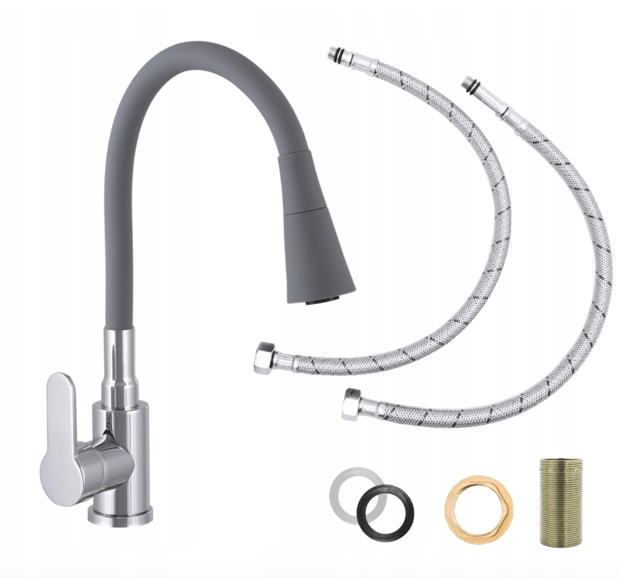 Bateria kuchenna stojąca elastyczna giętka kran kuchenny szara/chrom NEROX