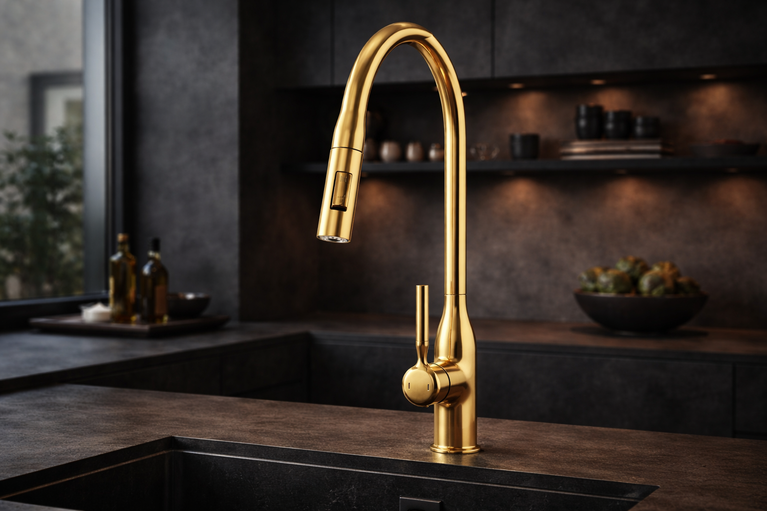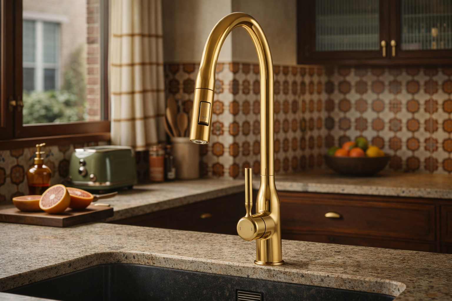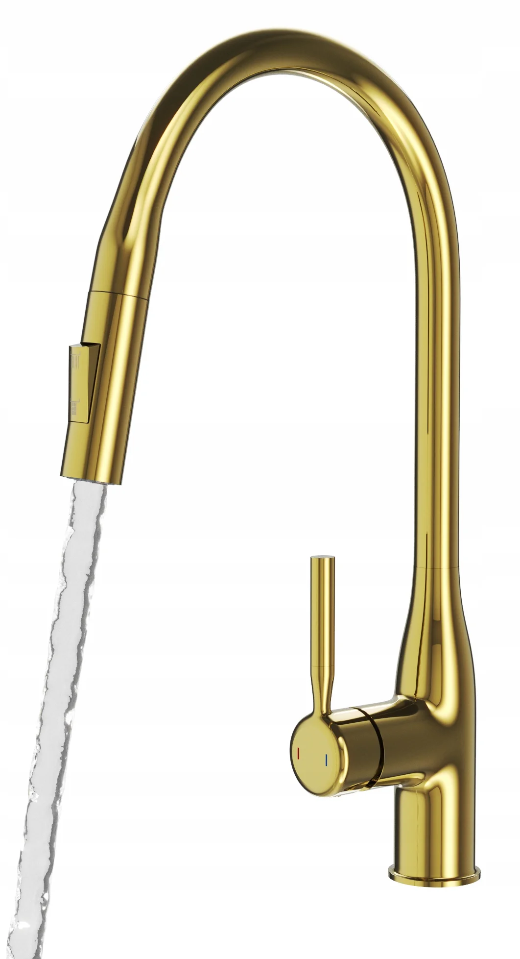 Model ten został wyposażony w wyciąganą i obrotową wylewkę, która zapewnia pełną swobodę ruchu oraz ułatwia mycie naczyń, płukanie produktów i czyszczenie zlewu, a dwufunkcyjna słuchawka pozwala szybko przełączać strumień między trybem standardowym a prysznicowym. Złoty kolor nadaje baterii elegancki, nowoczesny charakter, idealnie pasujący do kuchni loftowych, industrialnych i minimalistycznych. Solidny mosiężny korpus gwarantuje trwałość i odporność na uszkodzenia, a ceramiczna głowica zapewnia płynną i precyzyjną regulację temperatury oraz strumienia wody. Powłoka odporna na wysoką temperaturę i przebarwienia sprawia, że bateria zachowuje estetyczny wygląd przez długi czas.