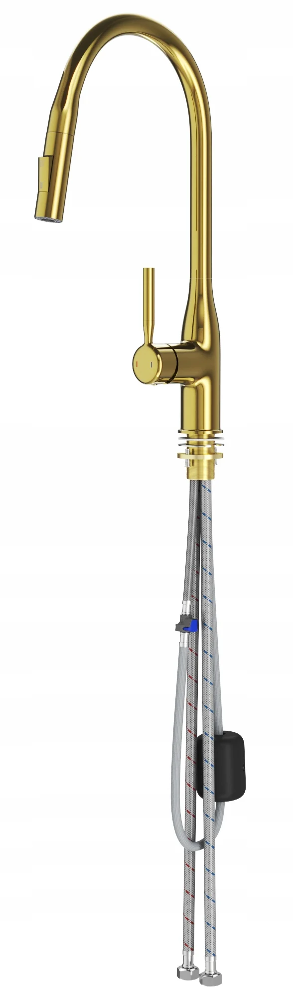 Bateria kuchenna stojąca kran dwufunkcyjny wyciągana wylewka złota FLUVO