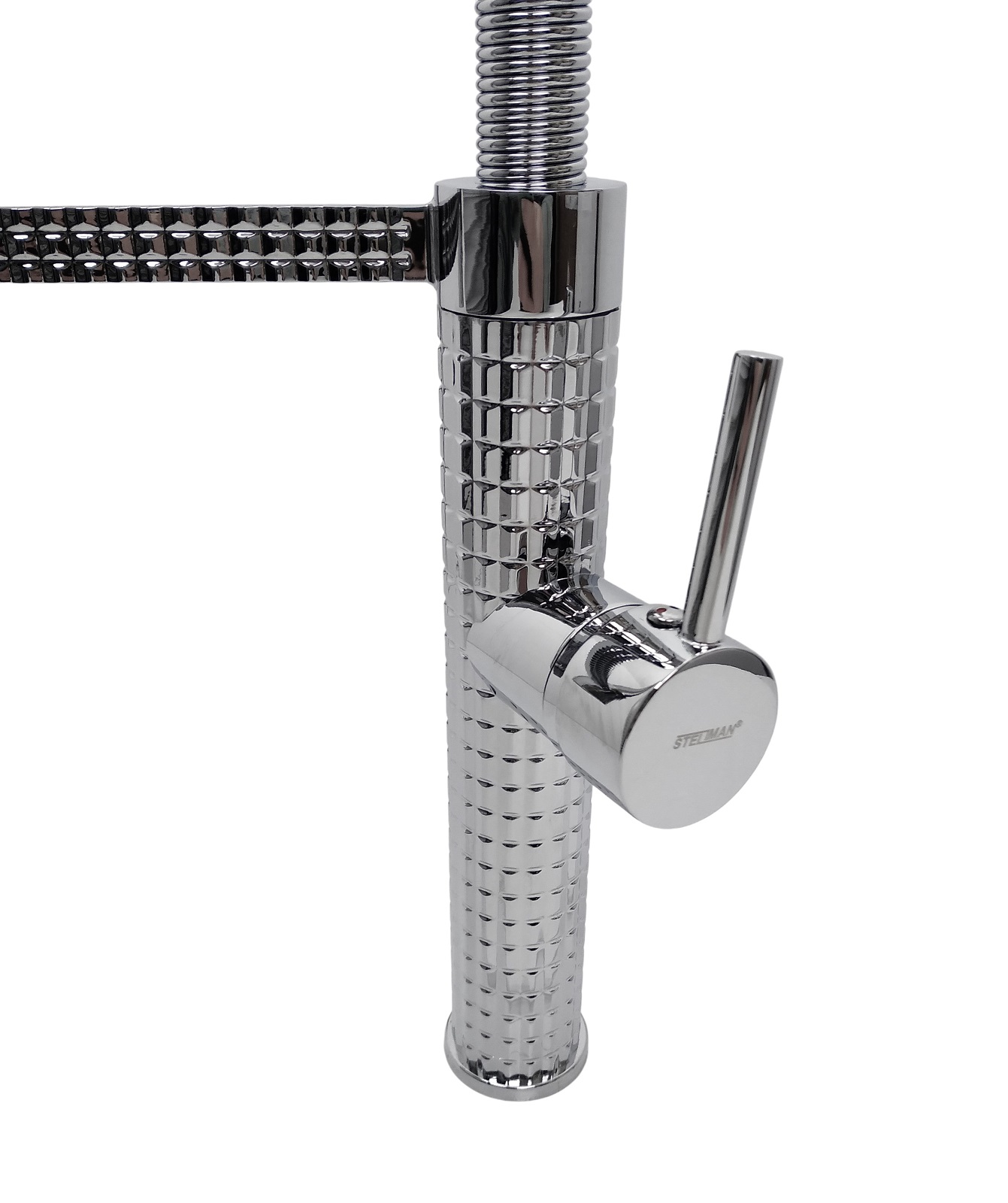 Model wykonany z wysokiej jakości mosiądzu gwarantuje wyjątkową trwałość, odporność na korozję oraz długą żywotność, a jego srebrne wykończenie premium przyciąga uwagę i podkreśla prestiż wnętrza, tworząc efekt wow już od pierwszego spojrzenia. Zastosowana elastyczna wylewka o długości 560 mm zapewnia pełną swobodę ruchu i wygodę podczas mycia naczyń, warzyw czy dużych garnków, umożliwiając precyzyjne kierowanie strumieniem wody w dowolne miejsce. Ceramiczna głowica odpowiada za płynną i precyzyjną regulację temperatury oraz ciśnienia wody, co przekłada się na komfort i niezawodność działania każdego dnia, a jednocześnie minimalizuje ryzyko awarii. Bateria charakteryzuje się również cichą i płynną pracą, dzięki czemu korzystanie z niej jest przyjemne i bezproblemowe. Nowoczesny design z geometrycznymi detalami nadaje całości wyjątkowego charakteru i sprawia, że bateria doskonale komponuje się zarówno z nowoczesnymi, jak i bardziej klasycznymi aranżacjami kuchennymi. Powierzchnia jest odporna na zarysowania i zabrudzenia, co pozwala zachować jej idealny wygląd przez długi czas bez konieczności intensywnej pielęgnacji. Montaż stojący zapewnia szybką i intuicyjną instalację, a wysoka konstrukcja zwiększa wygodę użytkowania, szczególnie przy większych naczyniach.