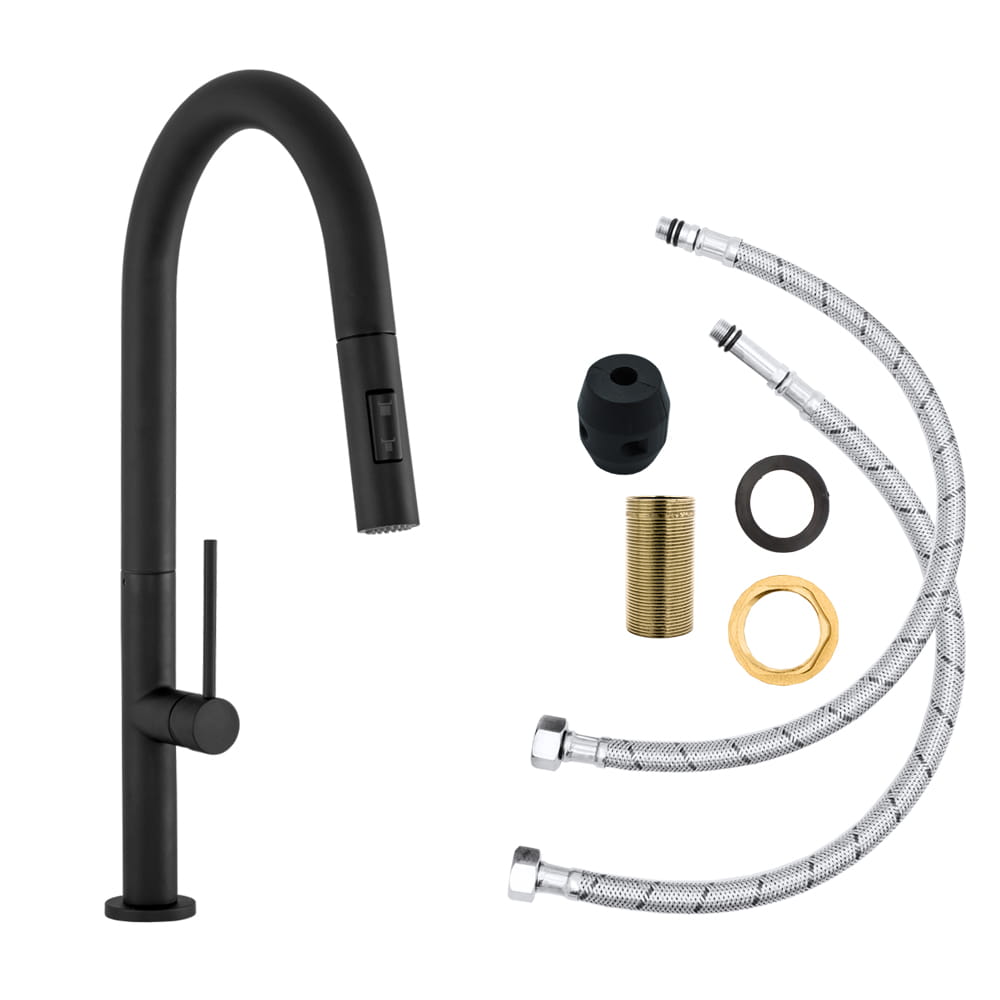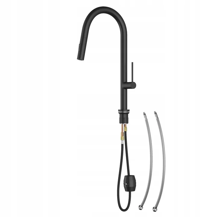Bateria kuchenna stojąca kran zlewozmywakowy wyciągana wylewka czarna FIORE