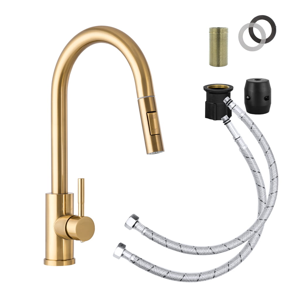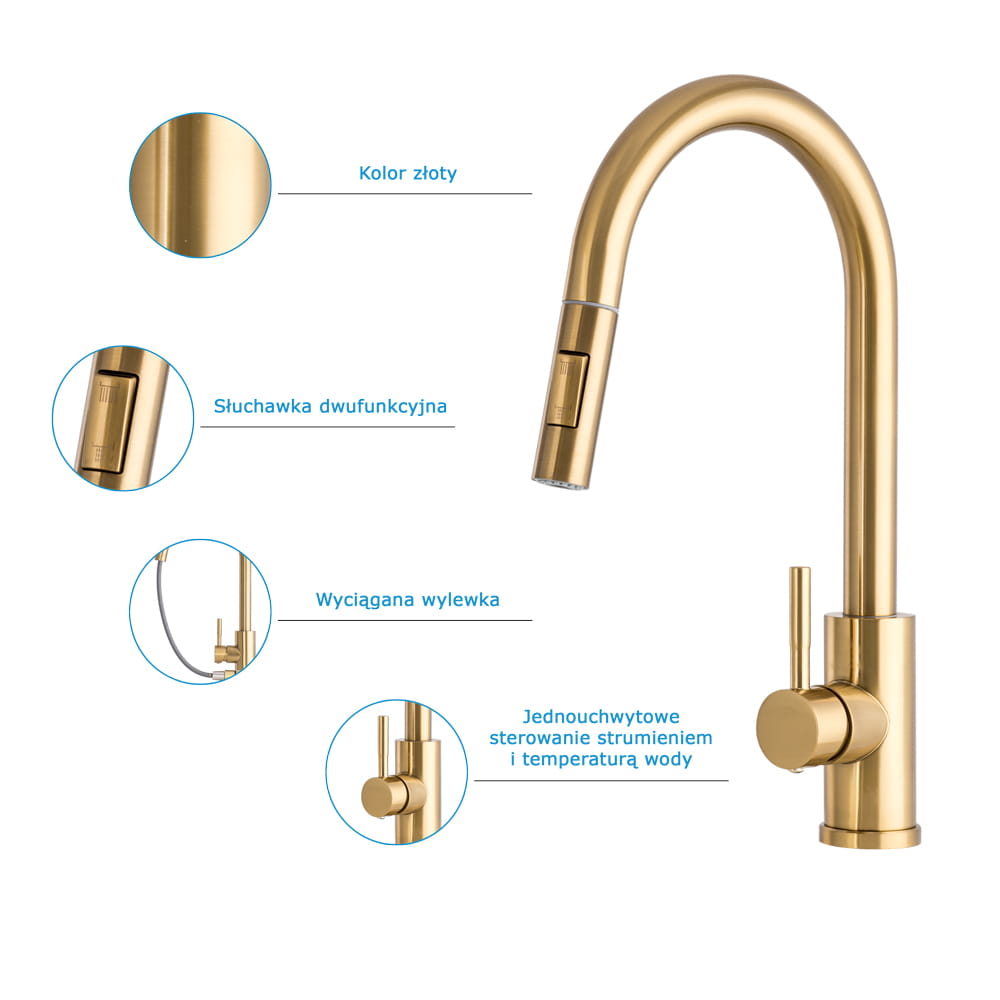 Bateria kuchenna stojąca wyciągana 2 funkcje kran kuchenny brushed gołd SENTO
