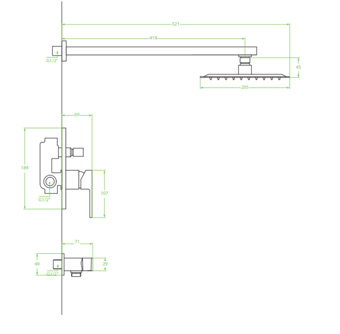 Solidny mosiężny korpus oraz ceramiczna głowica gwarantują trwałość i precyzyjną regulację strumienia wody. Zestaw wyposażono w system antykamień ułatwiający utrzymanie deszczowni w czystości oraz system antyskręt, który zapobiega plątaniu się węża. Dołączony box podtynkowy z elementem poziomującym znacząco ułatwia montaż i zapewnia dostęp serwisowy bez konieczności kucia ściany.