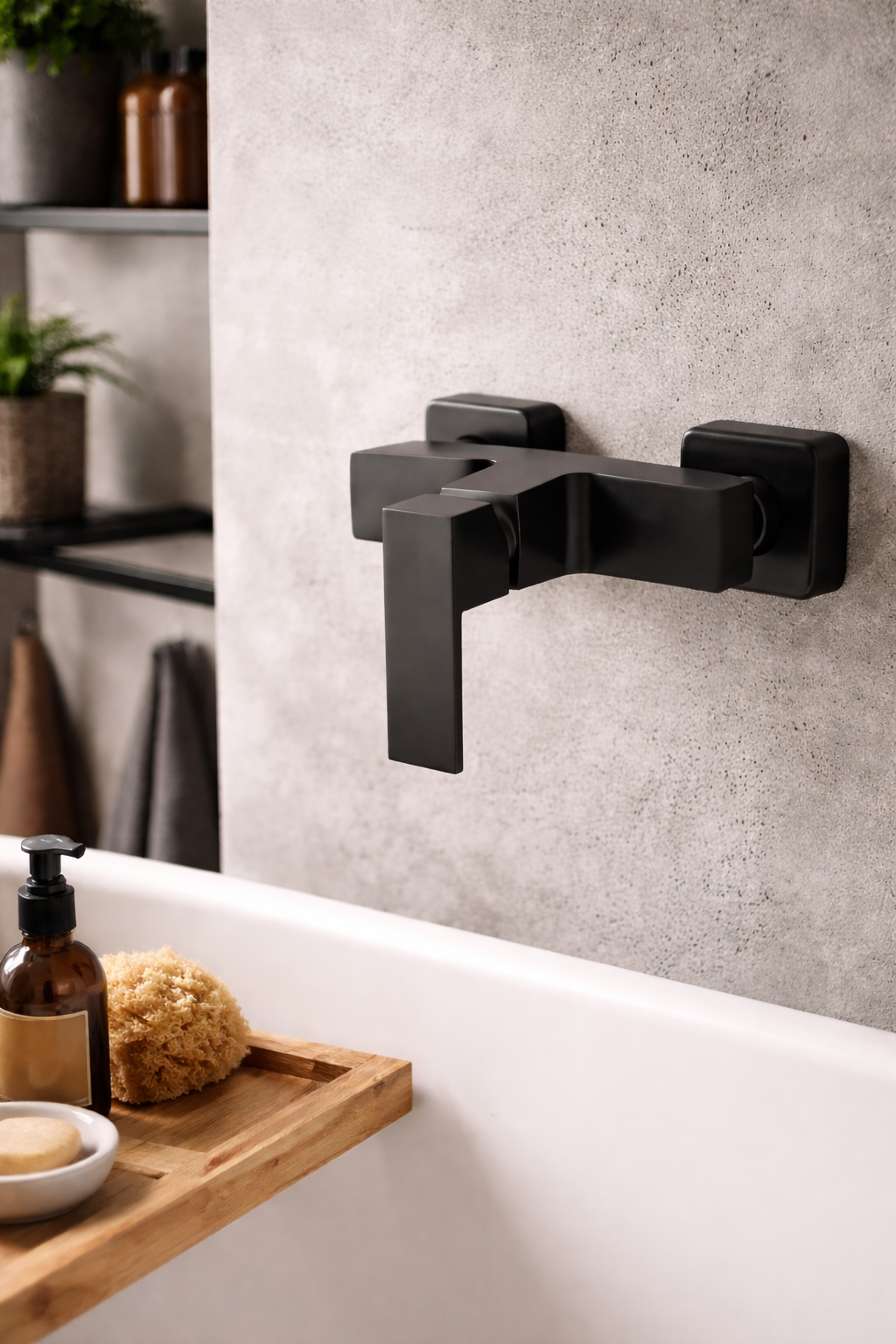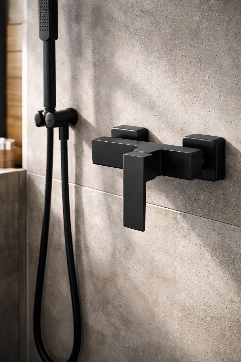 Bateria natryskowa ścienna jednouchwytowa LAVEO to nowoczesne i funkcjonalne rozwiązanie do kabin prysznicowych urządzonych w minimalistycznym stylu. Smukły korpus o geometrycznych, kwadratowych liniach w połączeniu z czarnym wykończeniem nadaje strefie prysznica elegancki, zdecydowany charakter i doskonale komponuje się z nowoczesną armaturą łazienkową.
