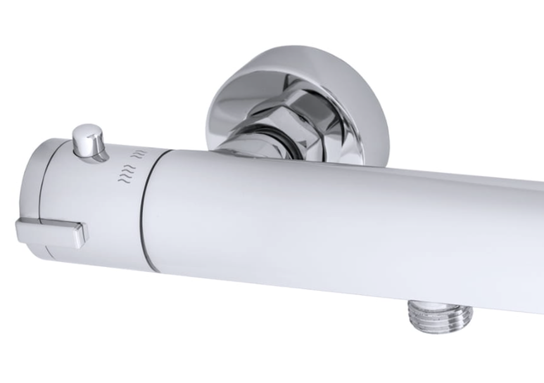 Bateria natryskowa termostatyczna DEL to nowoczesne i bezpieczne rozwiązanie do strefy prysznica, stworzone z myślą o maksymalnym komforcie kąpieli. Wbudowany termostat utrzymuje stałą temperaturę wody, eliminując ryzyko nagłych zmian ciśnienia i temperatury, a blokada bezpieczeństwa 38°C chroni przed poparzeniem.