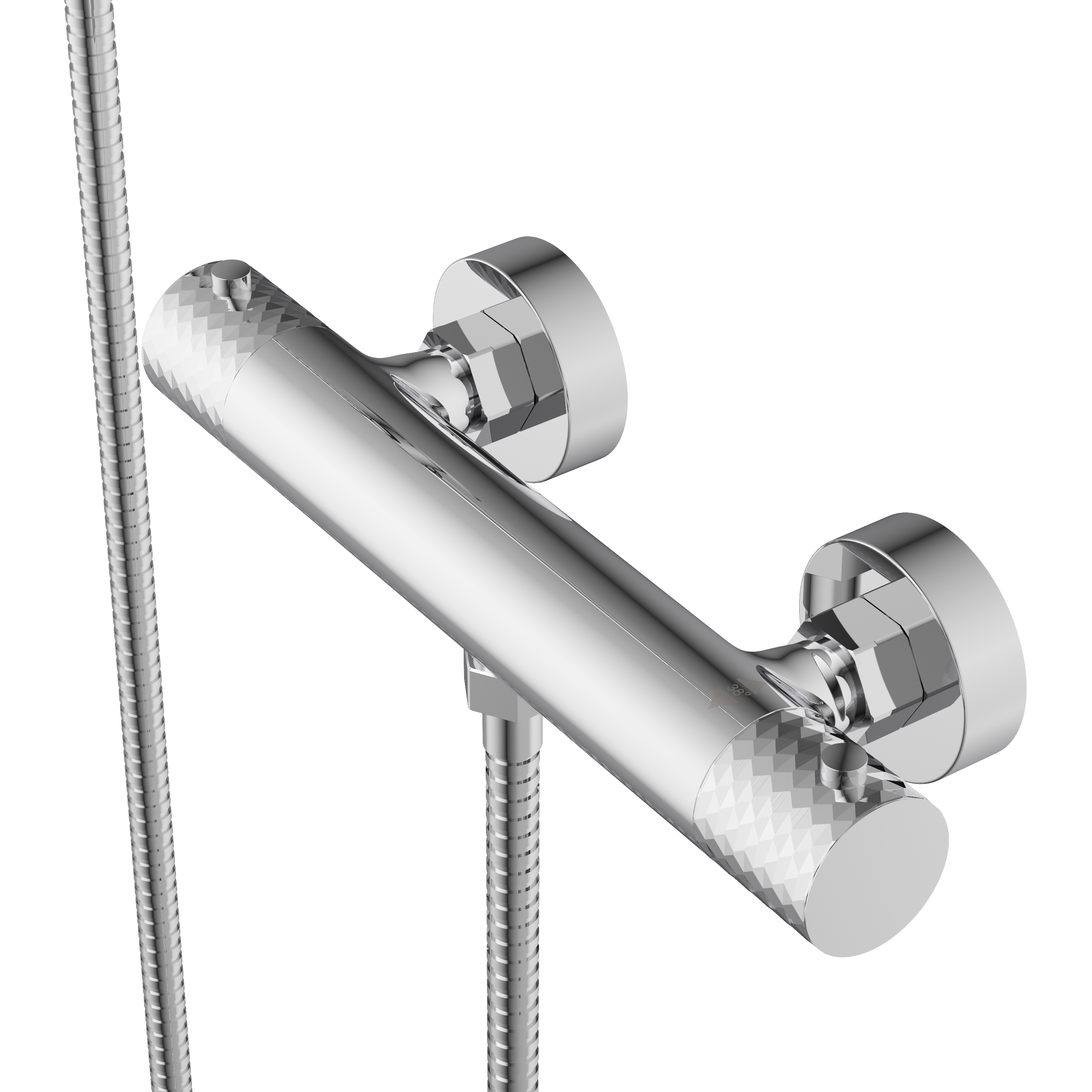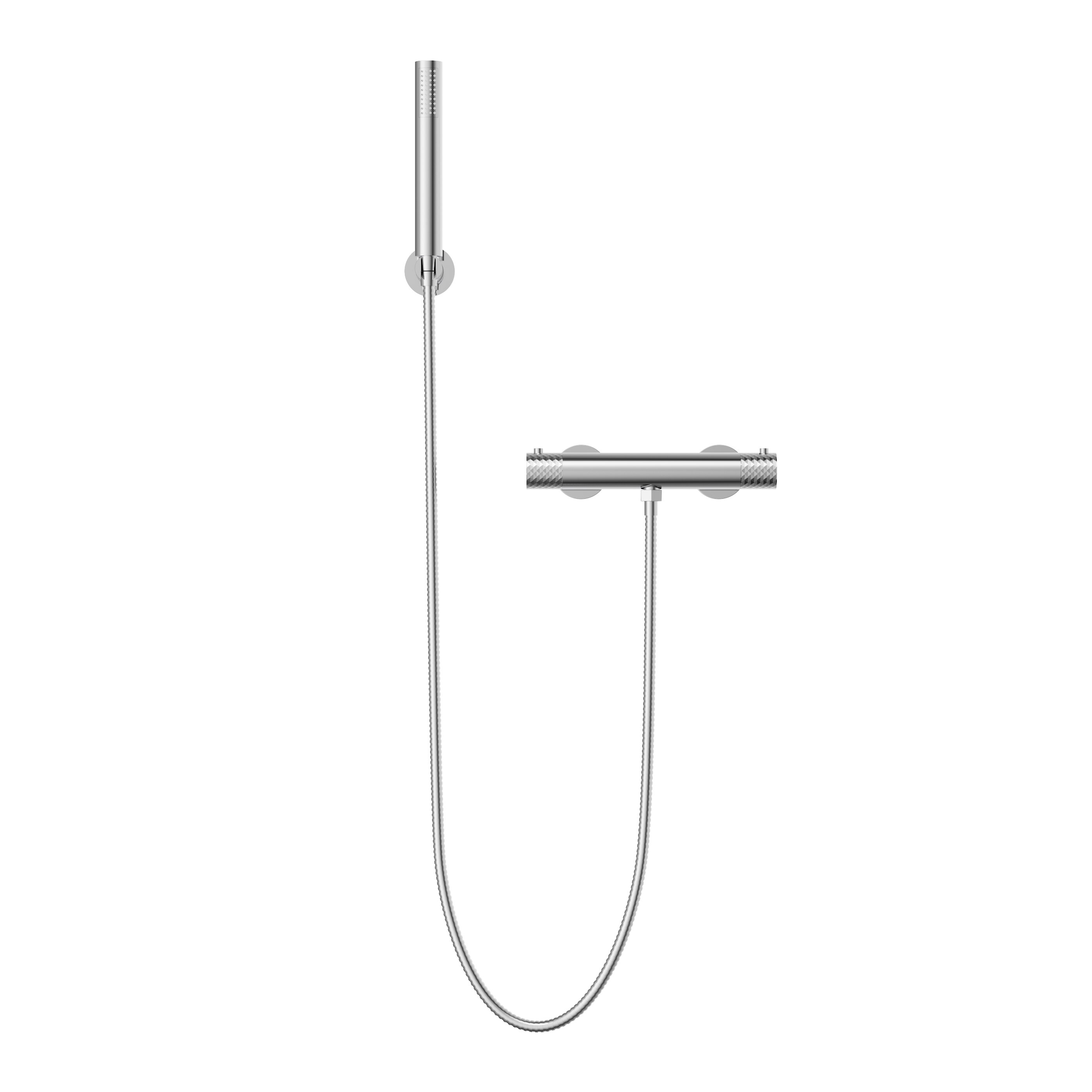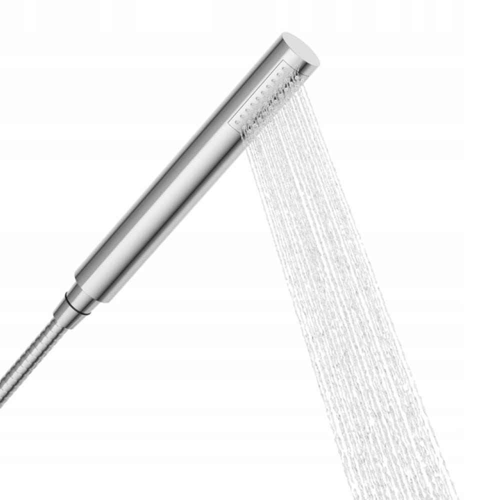 Chromowane wykończenie, smukła forma i precyzyjnie dopracowane detale nadają zestawowi elegancki, minimalistyczny charakter. Do baterii dołączona jest cylindryczna słuchawka natryskowa, która oferuje równomierny, komfortowy strumień wody oraz łatwą pielęgnację dzięki silikonowym dyszom.