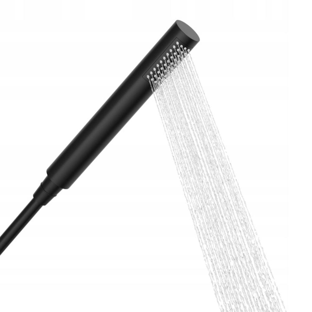 Czarne wykończenie, smukła forma i precyzyjnie dopracowane detale nadają zestawowi elegancki, minimalistyczny charakter. Do baterii dołączona jest cylindryczna słuchawka natryskowa, która oferuje równomierny, komfortowy strumień wody oraz łatwą pielęgnację dzięki silikonowym dyszom.