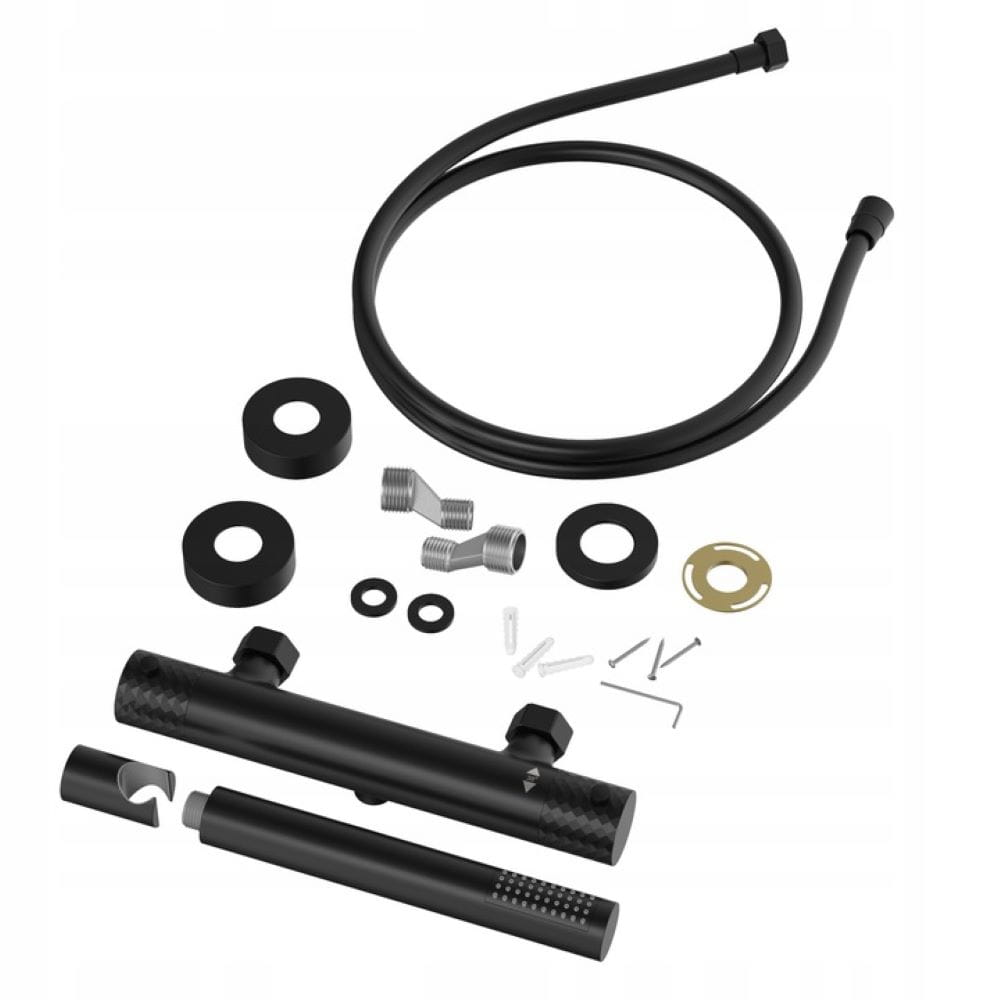 Bateria natryskowa termostatyczna ze słuchawką mosiądz stal GAMO - czarna