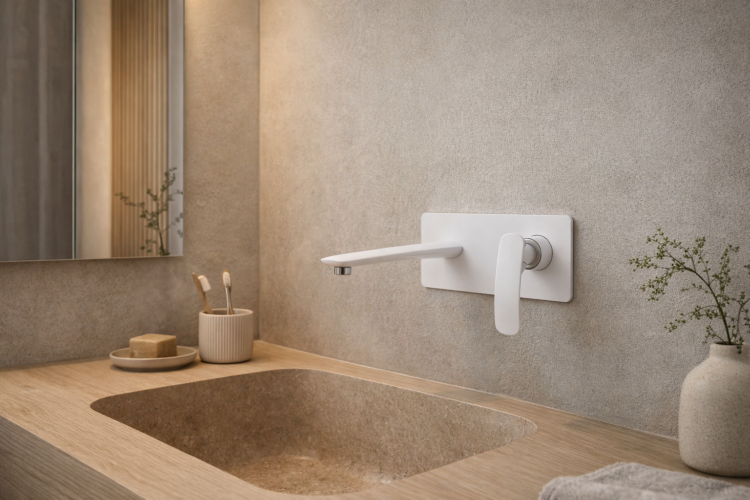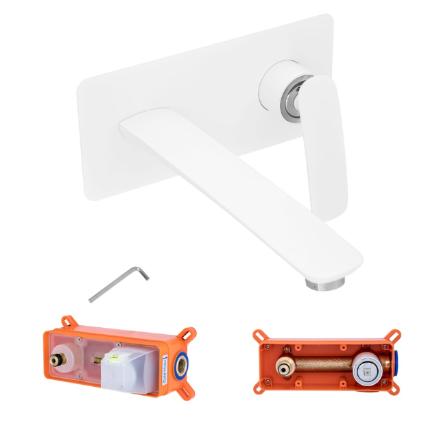 Bateria umywalkowa podtynkowa kwadratowa ROCCO to nowoczesne i minimalistyczne rozwiązanie stworzone z myślą o eleganckich, architektonicznych wnętrzach łazienek. Podtynkowy montaż pozwala ukryć elementy instalacyjne w ścianie, zapewniając czystą linię i maksymalną estetykę strefy umywalkowej. Białe wykończenie nadaje wnętrzu świeży, nowoczesny charakter i doskonale wpisuje się w aktualne trendy aranżacyjne.