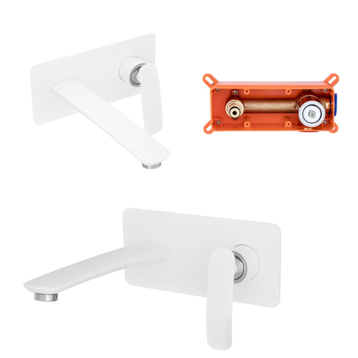 Bateria umywalkowa podtynkowa kwadratowa bateria łazienkowa biała - ROCCO