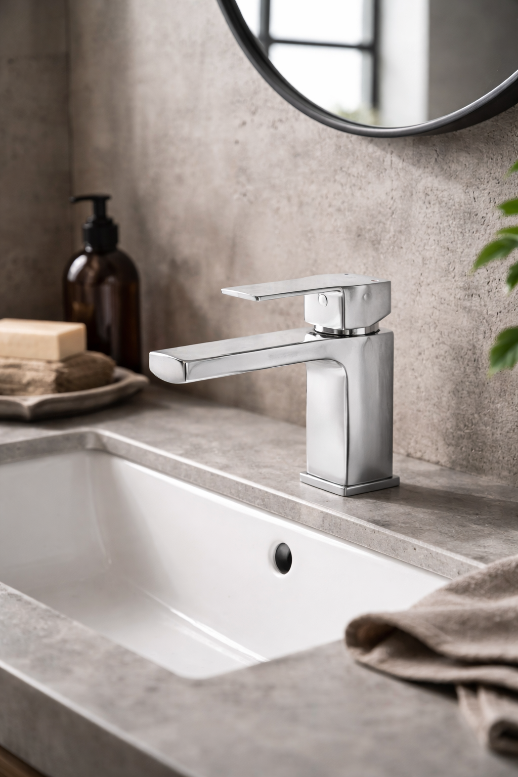 Bateria umywalkowa stojąca LAVEO to nowoczesne rozwiązanie stworzone z myślą o minimalistycznych i eleganckich łazienkach. Geometryczny korpus z kwadratową, płaską wylewką oraz smukłą dźwignią tworzy spójną, designerską całość, a chromowane wykończenie w wysokim połysku podkreśla estetykę strefy umywalkowej.
