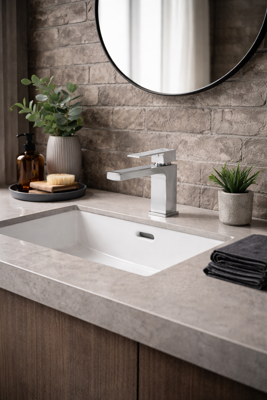 Trwały mosiężny korpus w połączeniu z ceramiczną głowicą zapewnia płynną i precyzyjną regulację strumienia wody oraz niezawodne działanie na co dzień. Montaż stojący przeznaczony do umywalek z fabrycznym otworem oraz system łatwego montażu pozwalają na szybką instalację bez użycia specjalistycznych narzędzi. Bateria doskonale sprawdzi się zarówno w nowych aranżacjach, jak i przy modernizacji łazienki.