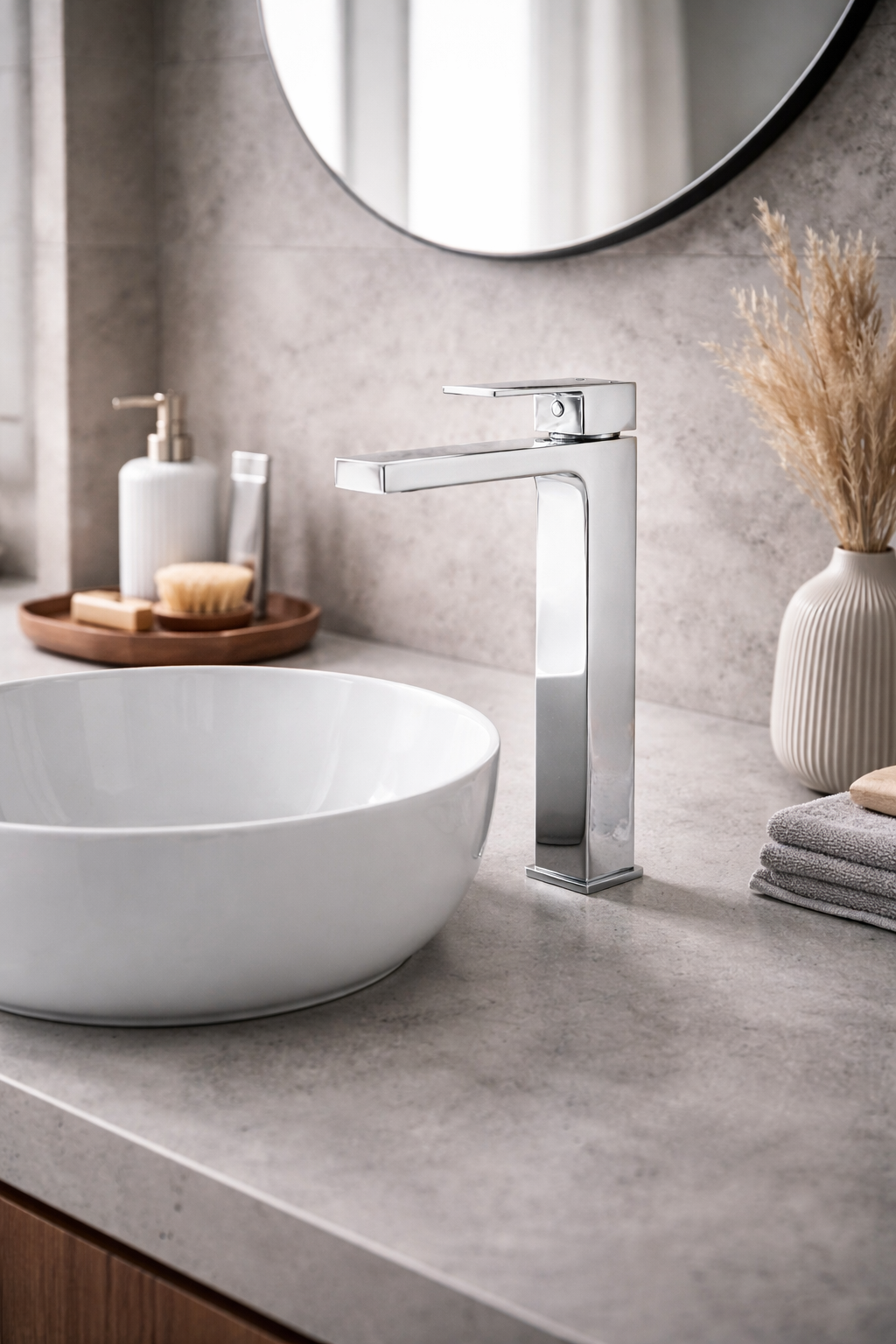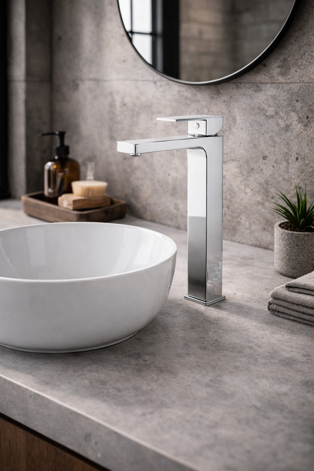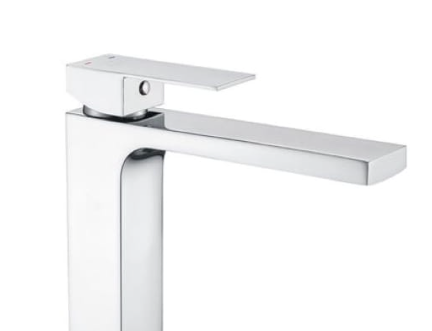 Bateria umywalkowa stojąca kran łazienkowy kwadratowa wysoka chrom LAVEO