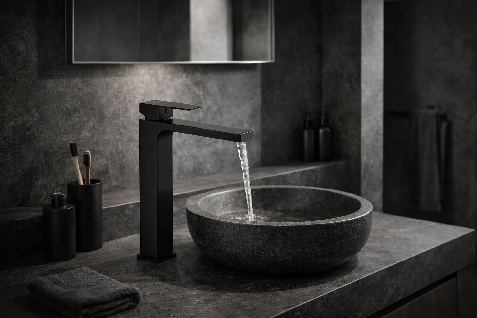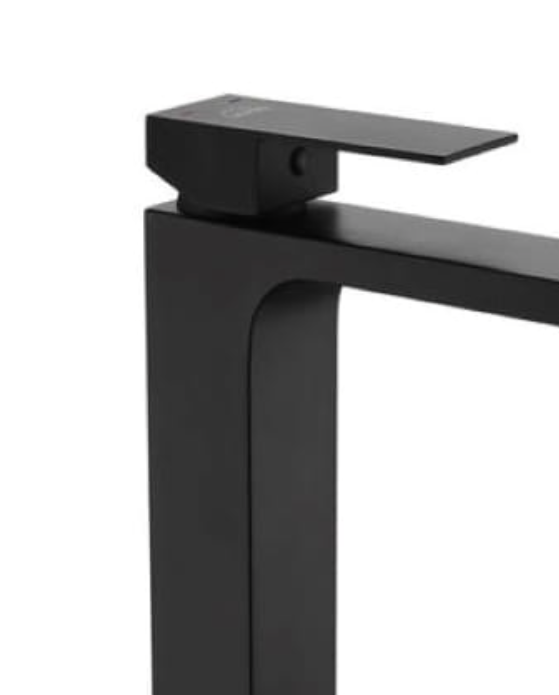 Bateria umywalkowa stojąca kran łazienkowy kwadratowa wysoka czarna LAVEO