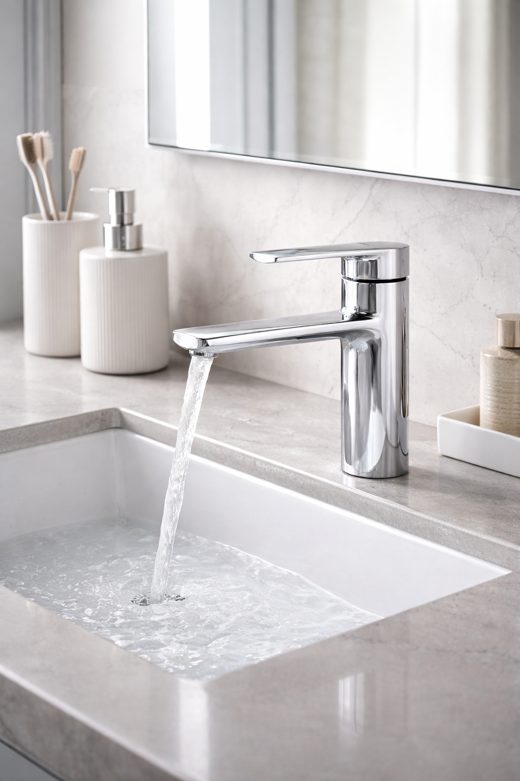 Bateria umywalkowa nablatowa ROLES z wylewką kaskadową to elegancka, stojąca armatura w chromowanym wykończeniu, zaprojektowana z myślą o nowoczesnych i funkcjonalnych łazienkach. Efektowna wylewka typu kaskada (wodospad) tworzy szeroki, naturalny strumień wody, który podnosi komfort użytkowania i nadaje wnętrzu luksusowego, designerskiego charakteru. Połyskliwy chrom optycznie rozjaśnia przestrzeń i świetnie komponuje się zarówno z nowoczesnymi, jak i bardziej klasycznymi aranżacjami. Solidny mosiężny korpus oraz ceramiczna głowica zapewniają trwałość, szczelność i precyzyjną regulację wody przez długie lata, a standardowy montaż nablatowy pozwala na szybkie dopasowanie baterii do większości umywalek.