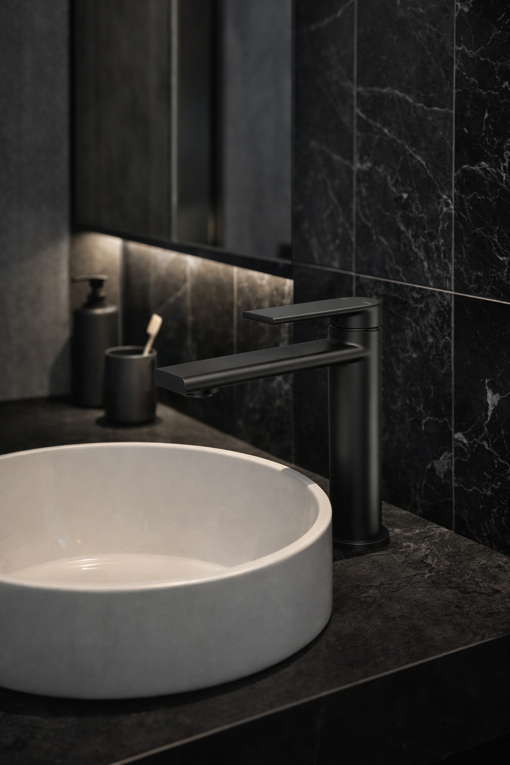 Bateria umywalkowa stojąca nablatowa niska DENO to kompaktowe i nowoczesne rozwiązanie do łazienek urządzonych w stylu minimalistycznym lub industrialnym. Proporcjonalna, niższa konstrukcja doskonale sprawdzi się przy mniejszych umywalkach oraz tam, gdzie liczy się ergonomia i oszczędność przestrzeni. Czarne, matowe wykończenie nadaje strefie umywalkowej wyrazisty, nowoczesny charakter.