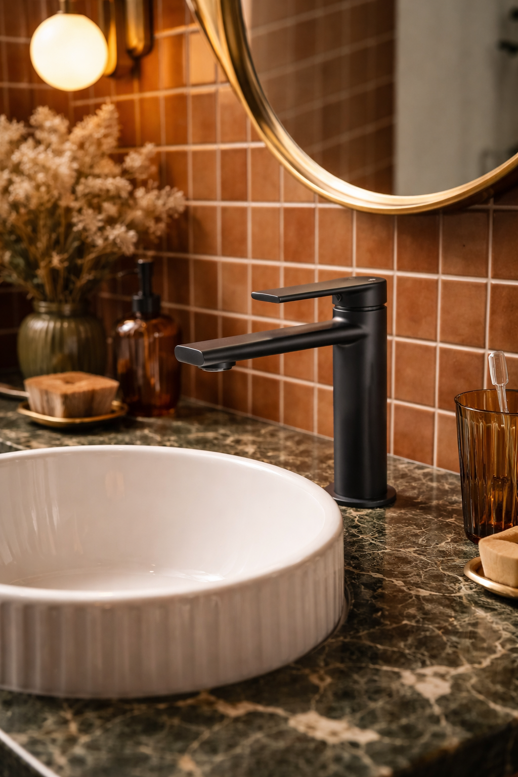 Wykonana z trwałego mosiądzu, bateria DENO zapewnia wysoką odporność na korozję i niezawodne działanie przez długi czas. Ceramiczna głowica gwarantuje płynną i precyzyjną regulację strumienia wody, a odporna powłoka chroni armaturę przed przebarwieniami i działaniem wysokiej temperatury. Minimalistyczna forma sprawia, że bateria harmonijnie wpisuje się w aranżacje typu loft i modern.