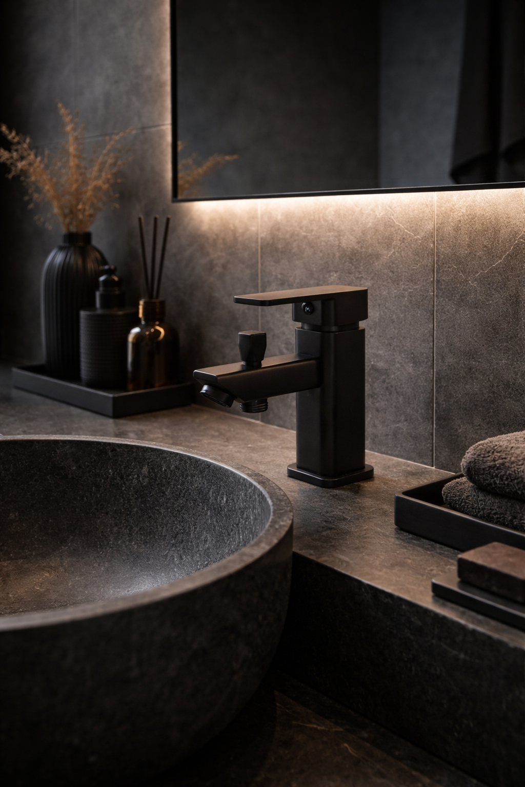 Wykonana z trwałego mosiądzu i wykończona czarną powłoką, bateria MANE wyróżnia się nowoczesnym wyglądem oraz odpornością na wysoką temperaturę i intensywne użytkowanie. Ceramiczna głowica zapewnia płynną i precyzyjną regulację strumienia oraz temperatury wody, a możliwość wyboru dwóch rodzajów strumienia zwiększa komfort codziennego korzystania. Dodatkowym atutem jest standardowe wyjście 1/2", które umożliwia podłączenie węża prysznicowego.