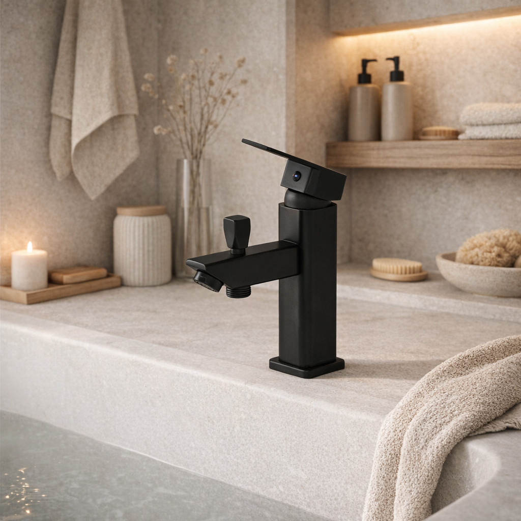 Bateria umywalkowo-wannowa stojąca MANE to uniwersalne i praktyczne rozwiązanie do nowoczesnych łazienek, w których liczy się elastyczność zastosowania i solidne wykonanie. Dzięki przemyślanej konstrukcji bateria może być stosowana zarówno przy umywalce, jak i wannie lub w strefach technicznych, oferując znacznie więcej możliwości niż klasyczna armatura.