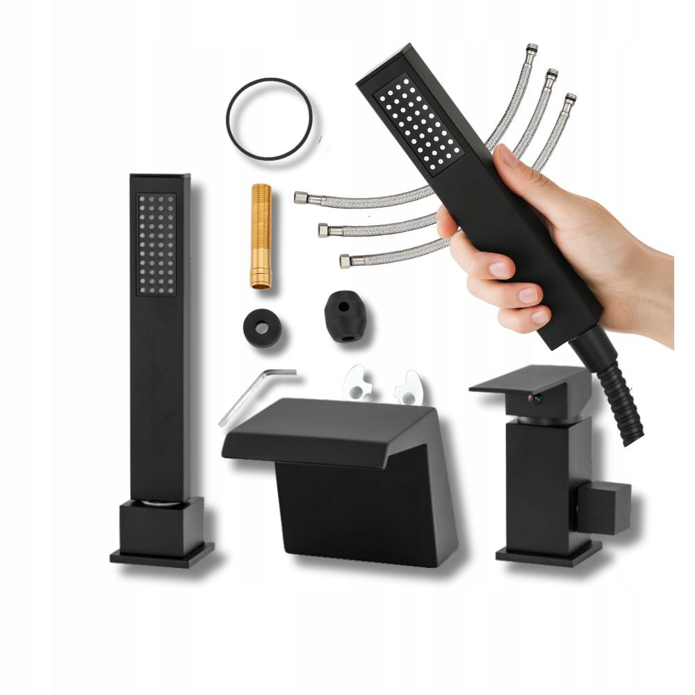 Bateria wannowa 3-otworowa bateria łazienkowa kran nawannowy czarna RONA