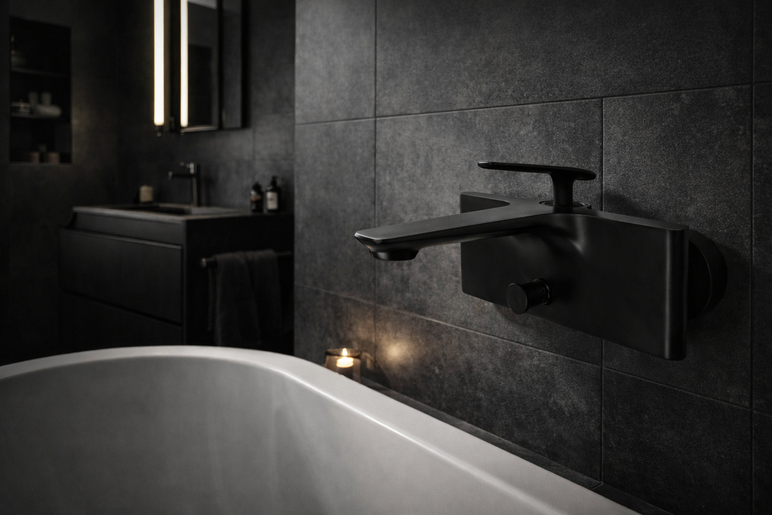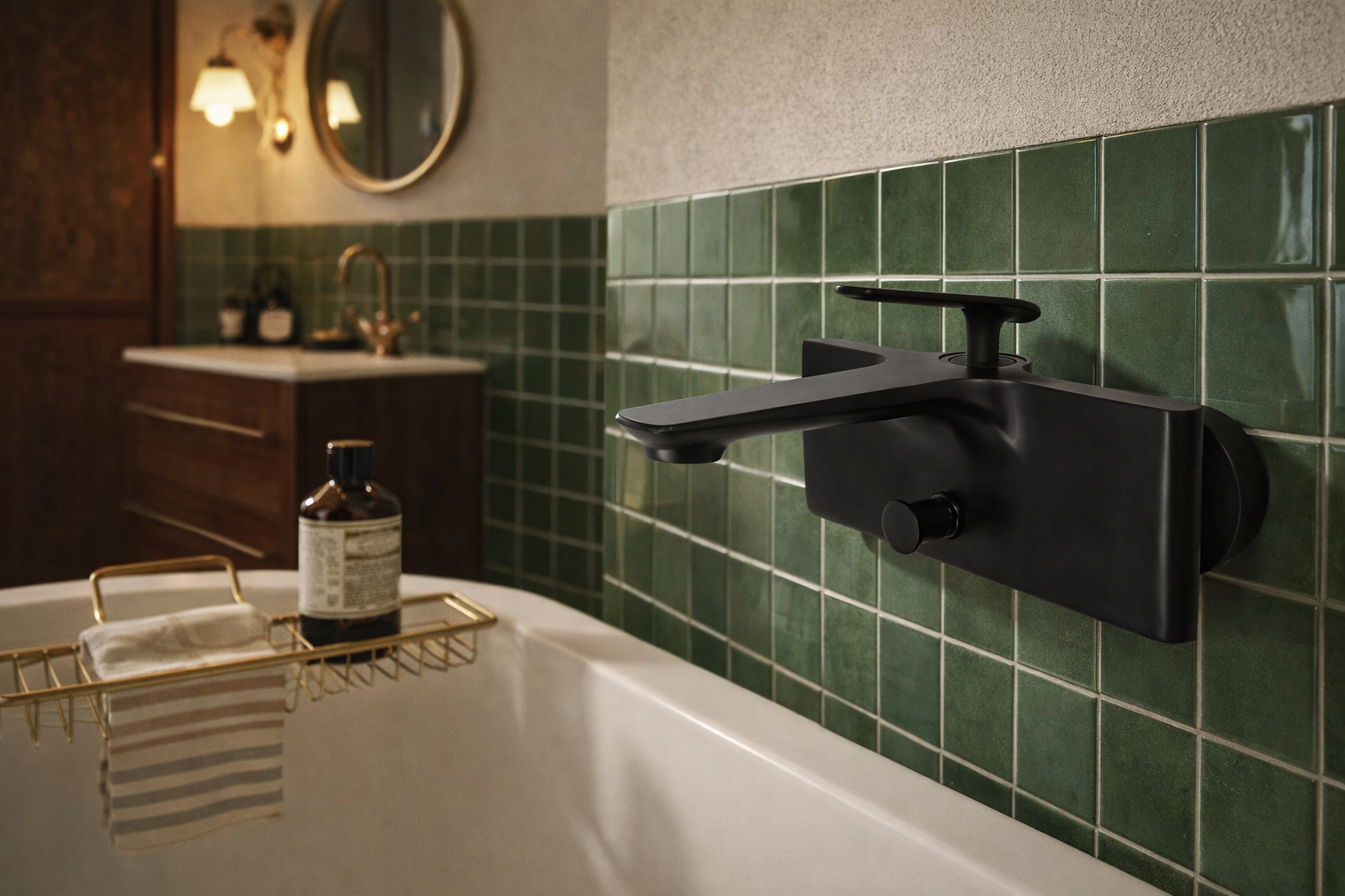Bateria wannowa kwadratowa ścienna CESO to nowoczesne i wyraziste rozwiązanie do łazienek urządzonych w stylu minimalistycznym lub loftowym. Geometryczna, kwadratowa forma podkreśla współczesny charakter wnętrza, a czarne, matowe wykończenie nadaje strefie kąpielowej elegancki i zdecydowany akcent.