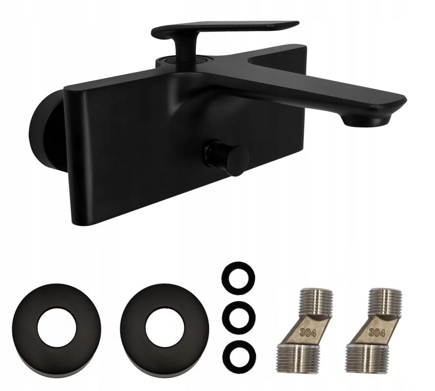 Bateria wannowa kwadratowa kran łazienkowy bateria ścienna czarna - CESO