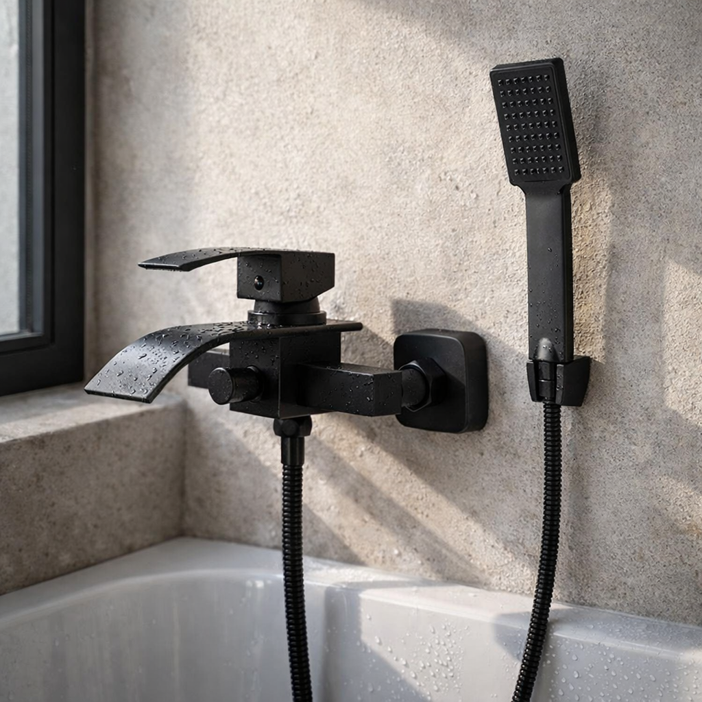 Bateria wannowa DUNE w wykończeniu czarnym to eleganckie rozwiązanie ścienne do nowoczesnych łazienek – szeroka wylewka kaskadowa tworzy naturalny, wodospadowy strumień, podnosząc komfort kąpieli i nadając wnętrzu luksusowy charakter. Mosiężny korpus oraz ceramiczna głowica gwarantują trwałość i płynną, precyzyjną regulację temperatury oraz przepływu wody, a odporna powłoka zachowuje estetyczny połysk nawet przy intensywnym użytkowaniu. Standardowy montaż ścienny z rozstawem 150 mm (regulacja na krzywkach 130–170 mm) umożliwia szybką wymianę bez przeróbek instalacji, a komplet elementów montażowych w zestawie zapewnia sprawną i bezproblemową instalację bez ingerencji w hydraulikę.