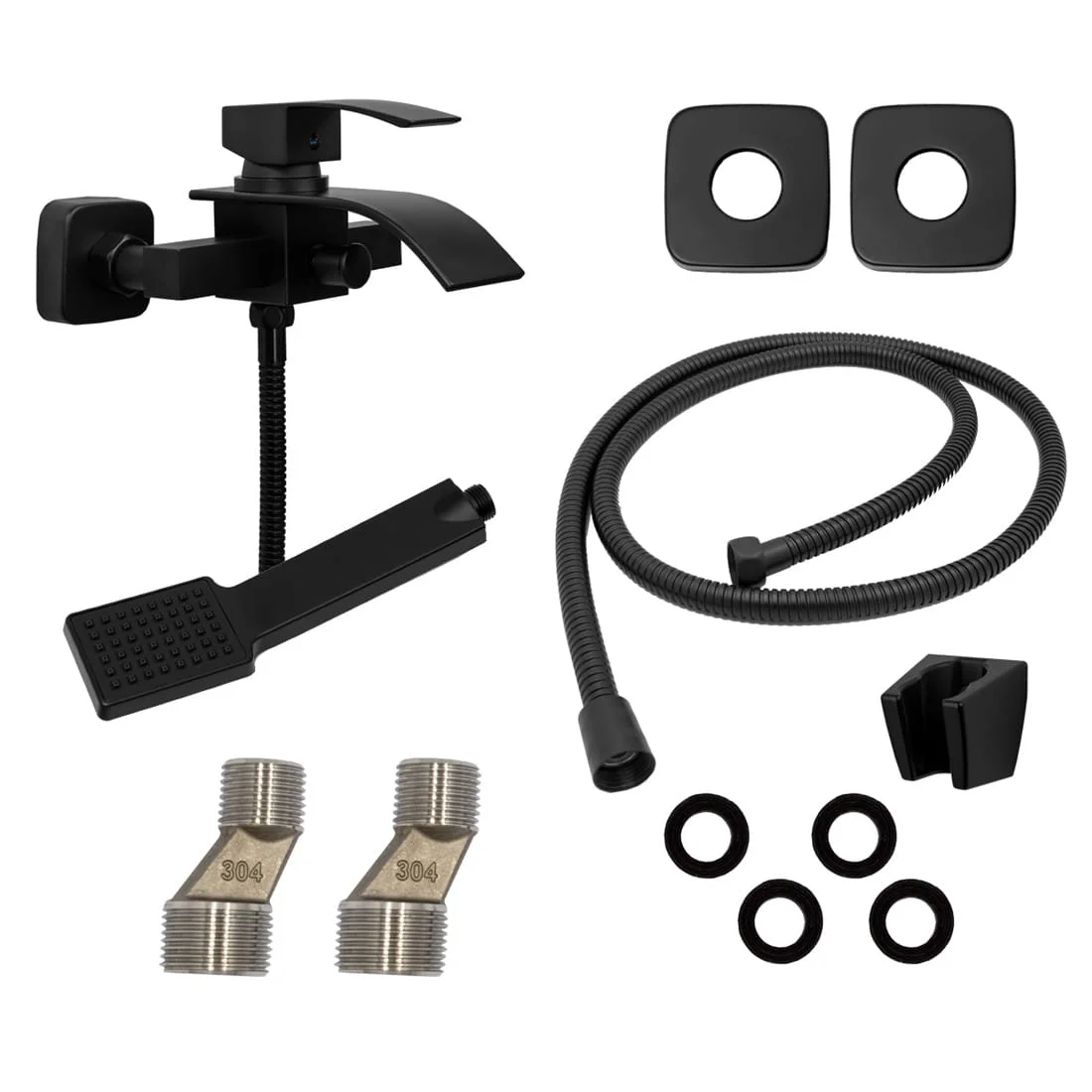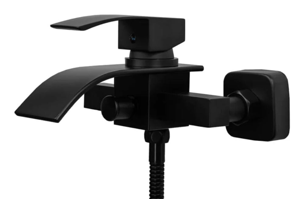 Bateria wannowa natryskowa łazienkowa wylewka kaskada ścienna czarna DUNE