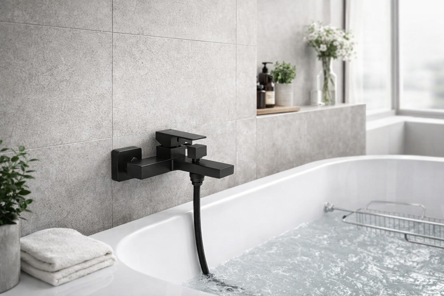Bateria wannowa natryskowa ścienna kwadratowa 2-funkcyjna czarny LAVEO