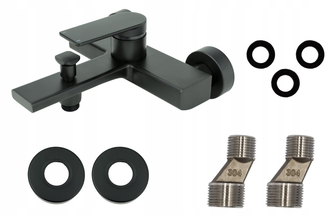Bateria wannowa ścienna bateria do wanny kran łazienkowy czarna - DENO