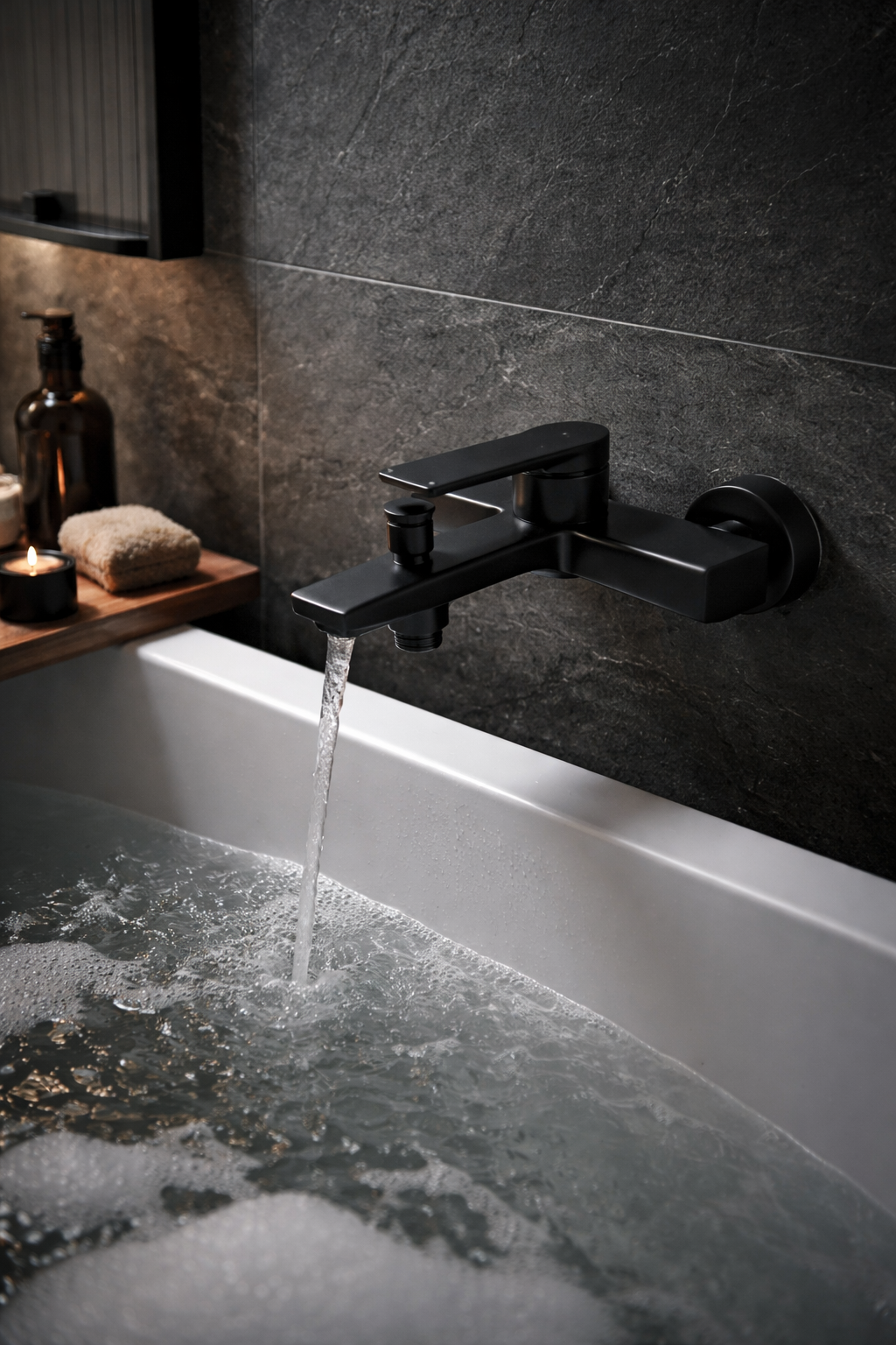 Bateria wannowa ścienna DENO to nowoczesne i solidne rozwiązanie do łazienek urządzonych w stylu minimalistycznym lub loftowym. Prosta, geometryczna forma w połączeniu z czarnym wykończeniem nadaje strefie wanny elegancki, wyrazisty charakter i doskonale komponuje się z nowoczesną armaturą.