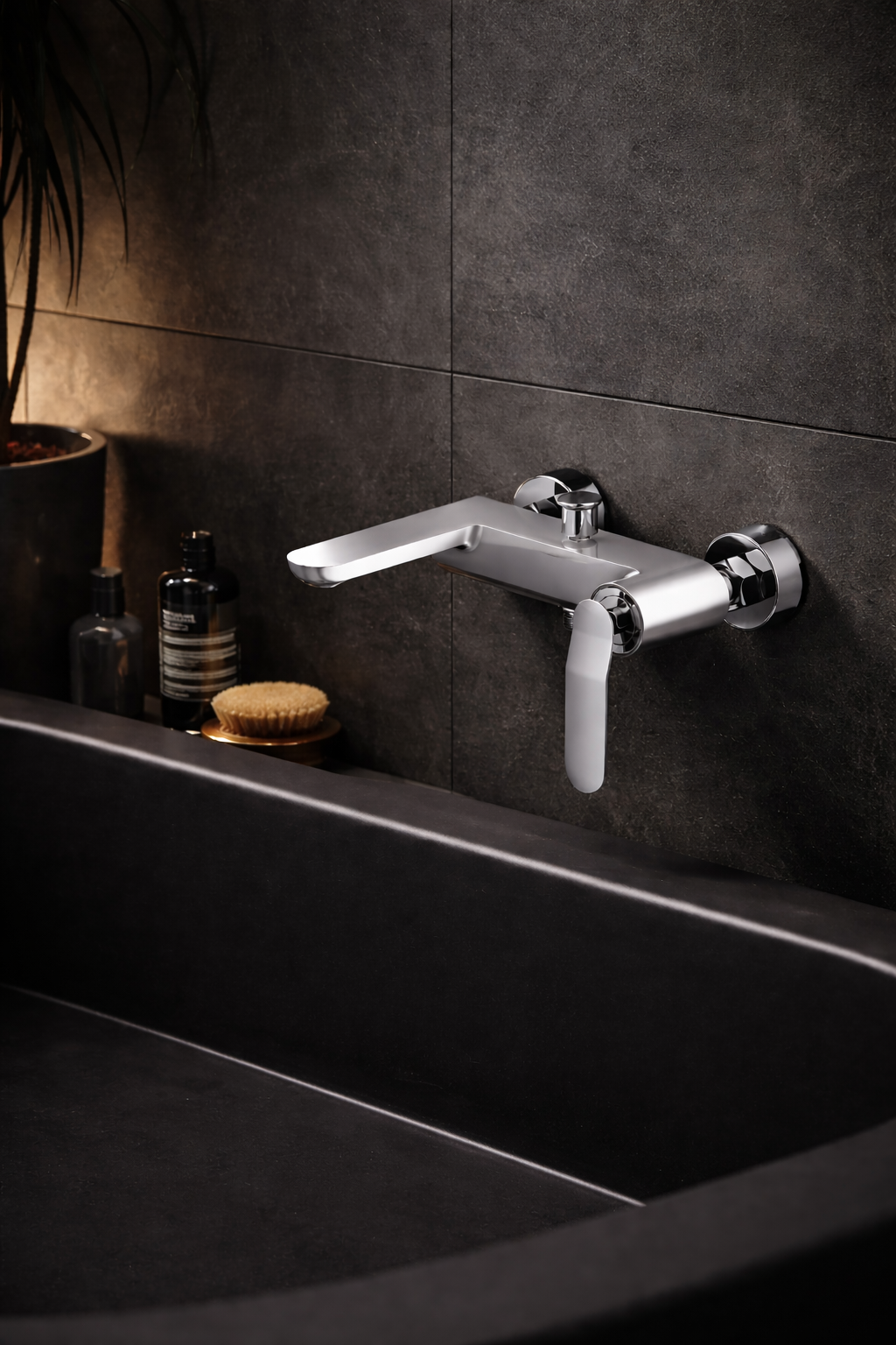 Montaż ścienny ze standardowym rozstawem z regulacją umożliwia łatwe dopasowanie do większości instalacji łazienkowych, dzięki czemu bateria VERO sprawdzi się zarówno w nowych aranżacjach, jak i podczas modernizacji strefy wanny.