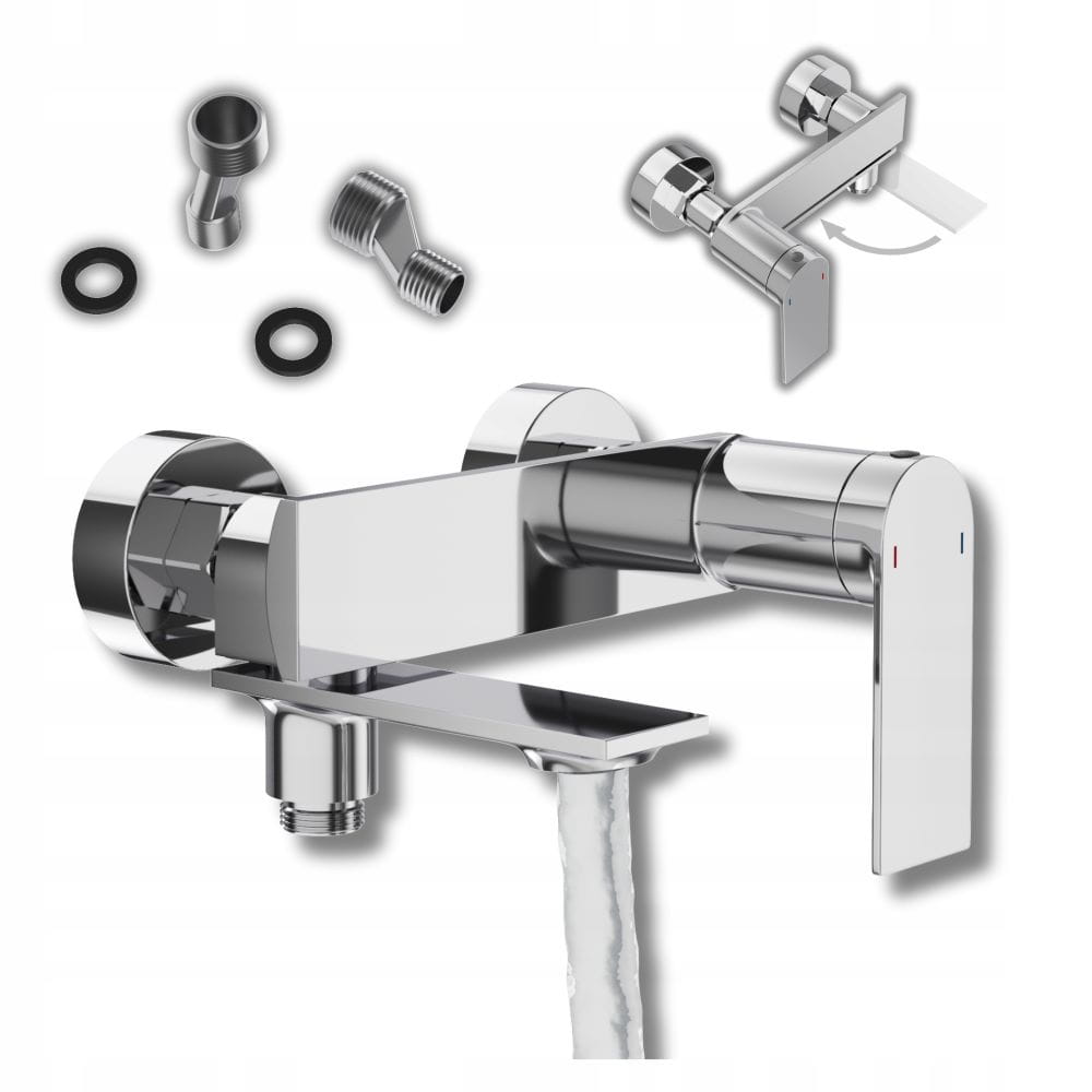 Bateria wannowa ścienna jednouchwytowa obrotowa wylewka natrysk chrom BAGO