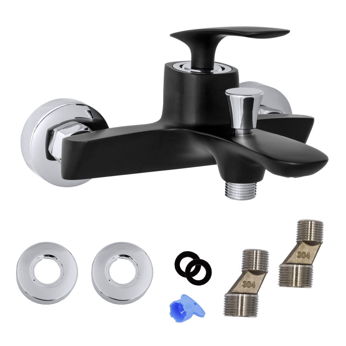 Bateria wannowa ścienna łazienkowa natryskowa kran do wanny czarna - ROCCO