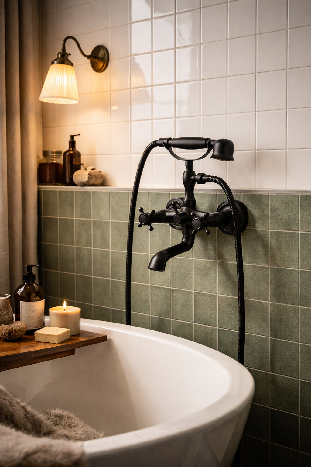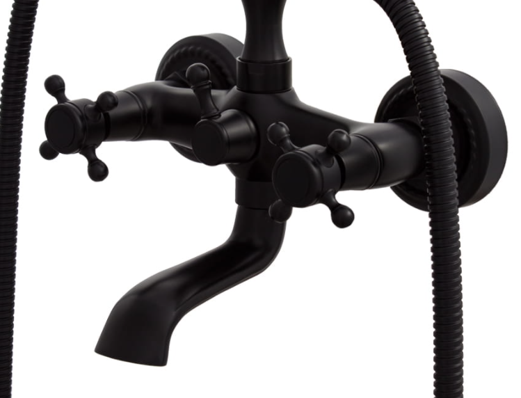 Bateria wannowa ścienna z zestawem natryskowym HANO to stylowe połączenie klasycznej estetyki retro z solidnym wykonaniem i pełną funkcjonalnością. Czarne wykończenie w zestawieniu z tradycyjną formą armatury tworzy wyrazisty akcent, który doskonale sprawdzi się w łazienkach urządzonych w stylu vintage, loftowym lub klasycznym.