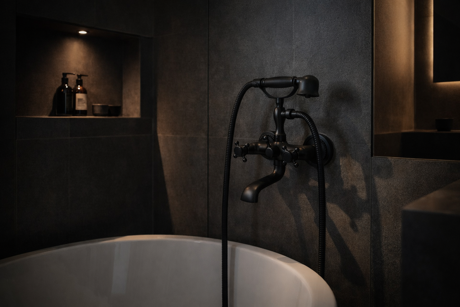 Bateria wannowa ścienna z zestawem natryskowym kran do wanny czarna HANO