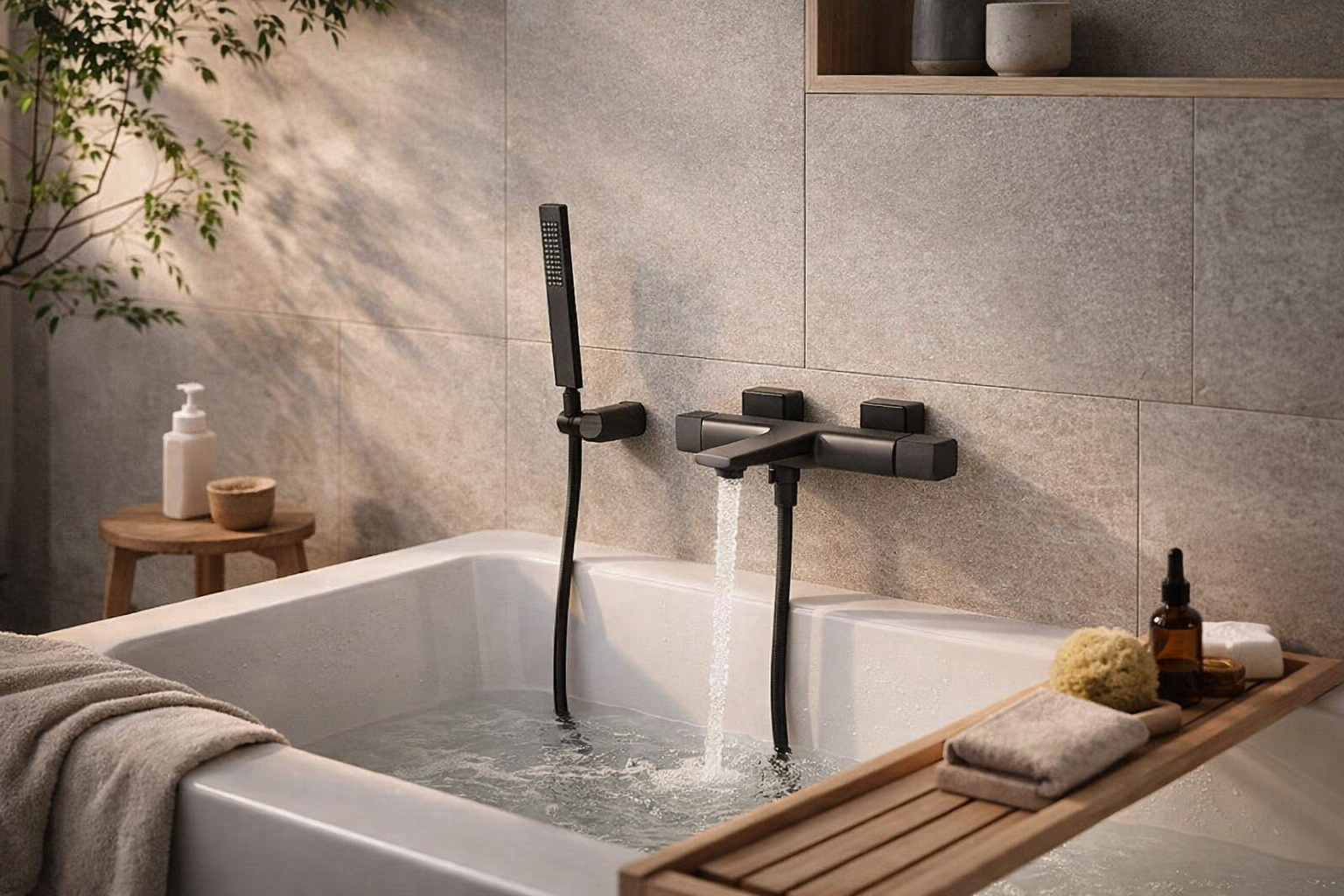 Bateria wannowa ścienna z zestawem natryskowym TORNA to połączenie nowoczesnej estetyki i niezawodnej funkcjonalności, stworzone z myślą o łazienkach urządzonych w eleganckim, współczesnym stylu. Matowe czarne wykończenie stanowi wyrazisty, designerski akcent, który podkreśla charakter wnętrza i doskonale komponuje się zarówno z jasnymi, jak i ciemnymi aranżacjami.