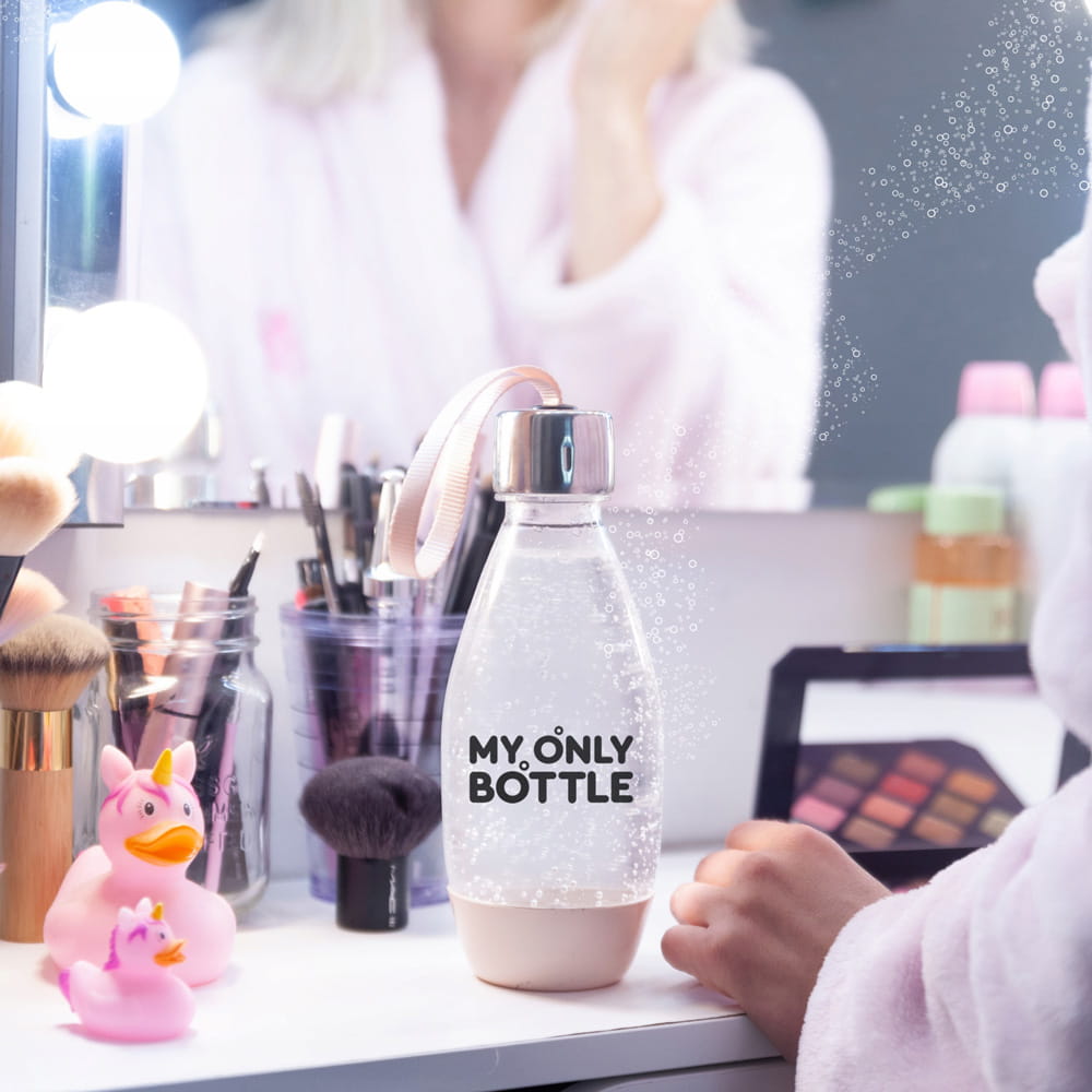 Wielorazowa butelka MOB została wyposażona w praktyczny, dopasowany do dłoni uchwyt, który ułatwia użytkowanie i noszenie butelki. Ten funkcjonalny zabieg pozwala bezproblemowo zabrać butelkę na spacer czy na trening. My Only Bottle nie tylko zachwyca wyglądem, ale jest niezwykle praktyczna! Od teraz nie musisz rozstawać się z bąbelkami nawet na chwilę!