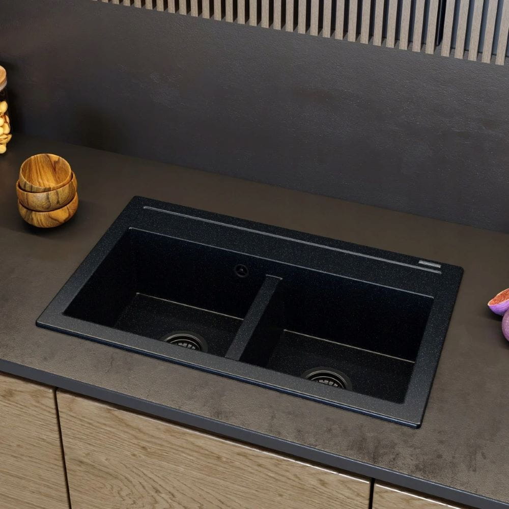 Czarny zlewozmywak granitowy z drobinkami koloru srebrnego Duet metalic
